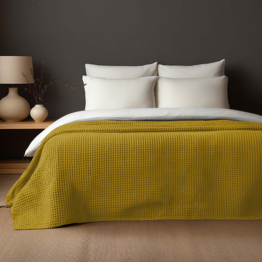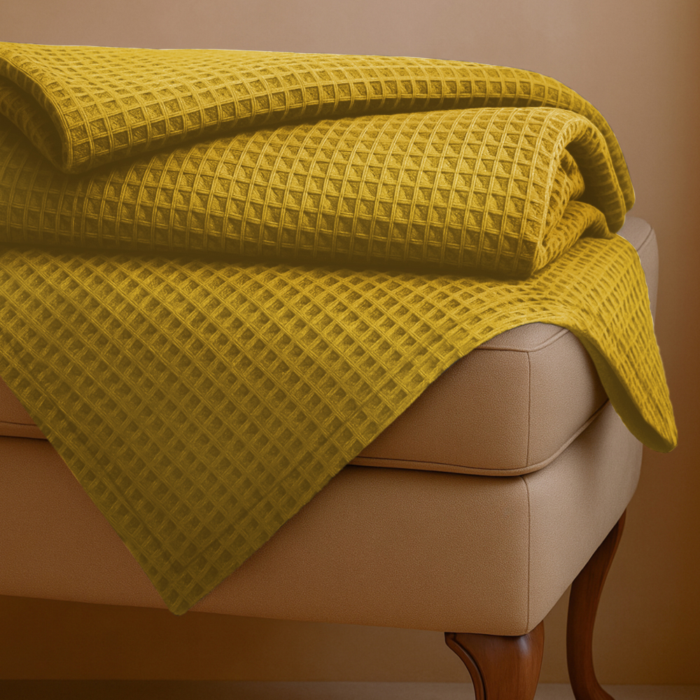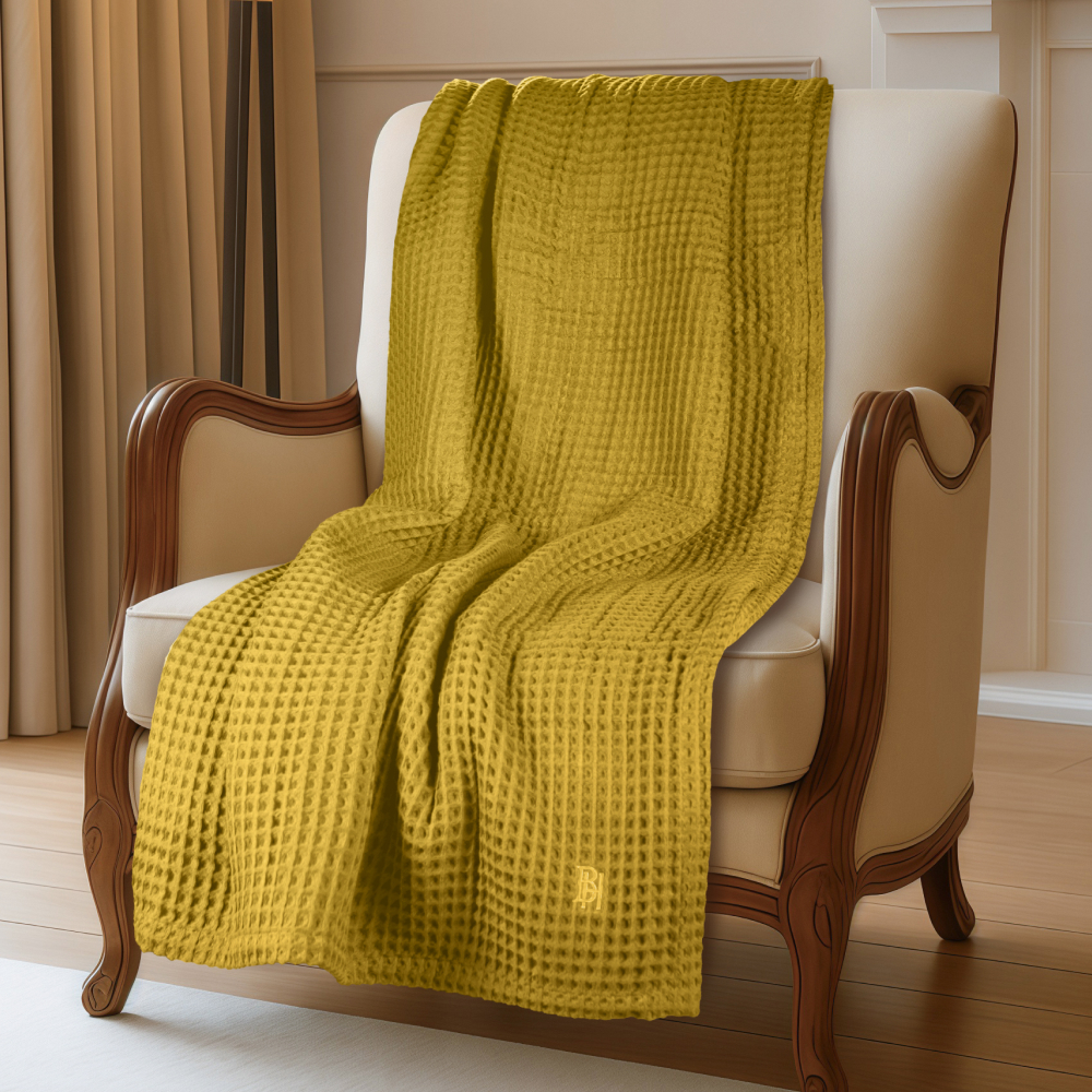 Создайте уют в любом уголке вашего дома с вафельным пледом Горчица с вышивкой BH.  Это не просто стильный аксессуар, а идеальное сочетание комфорта, натуральности и элегантности. Материал 100% хлопок – мягкий, дышащий и гипоаллергенный, не раздражает кожу. Размер пледа:  150×200 – оптимален для укрывания, использования на диване или в кресле. Сдержанный горчичный оттенок и  лаконичная вышивка добавляют элегантности. Универсален – подходит для прохладных вечеров и летних веранд. Невероятно мягкий – хлопковая вафельная ткань приятна к телу, не электризуется, отлично греет, но не перегружает – благодаря структуре плетения обеспечивает комфортный микроклимат. Легкий уход – можно стирать в машинке, быстро сохнет. Для дома, путешествий, пикников и морских прогулок. Подарите себе тепло и уют с вафельным пледом Bellehome