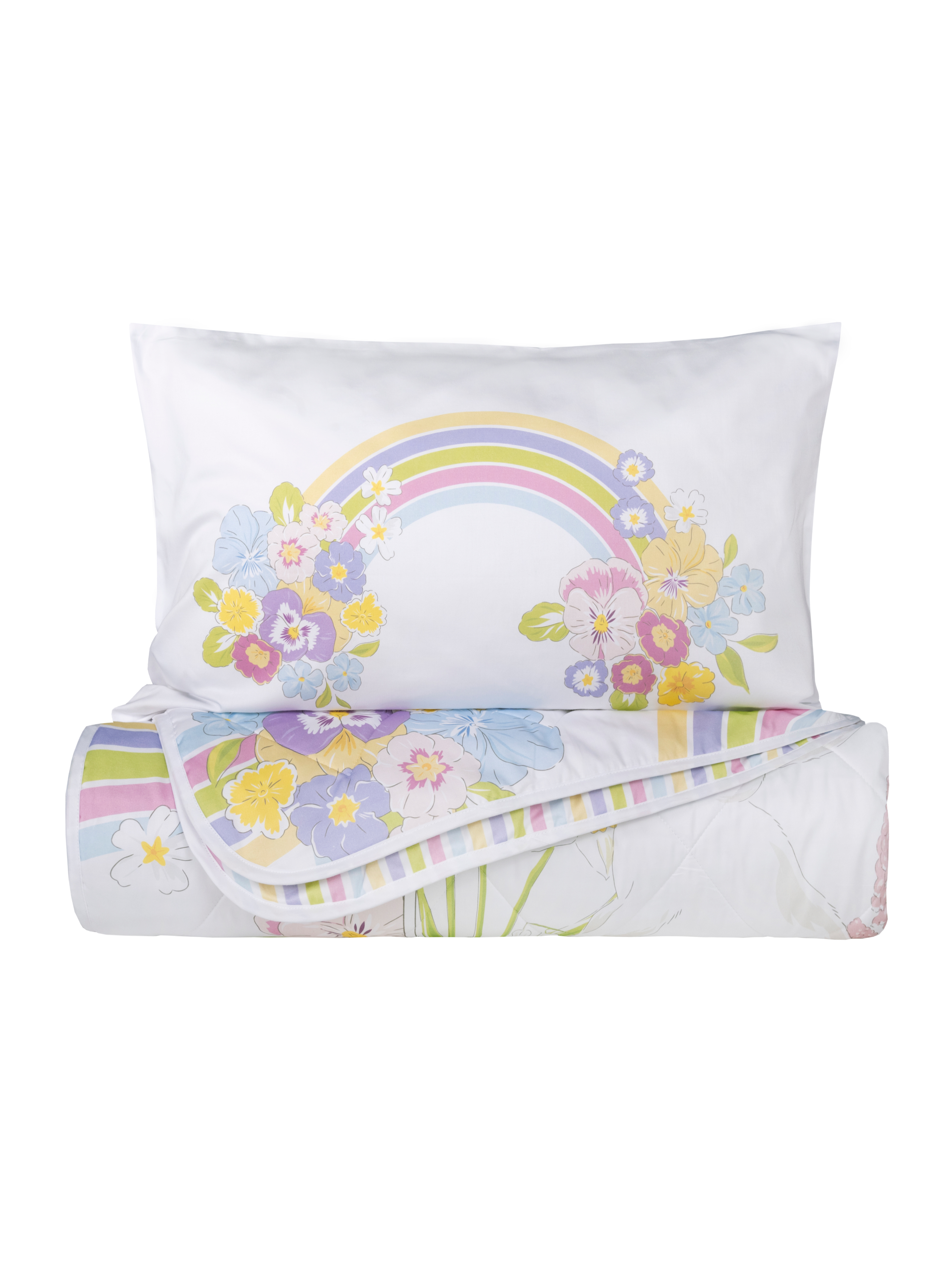 Детское покрывало с наволочкой «Радужная зайка» от BELLEHOME — полёт фантазии и невероятный комфорт, собранные в одном. В нашем дизайнерском бюро разработали эксклюзивные принты для юных мечтателей. Воплощены в жизнь с помощью цифровой высококачественной печати гипоаллергенными красками!