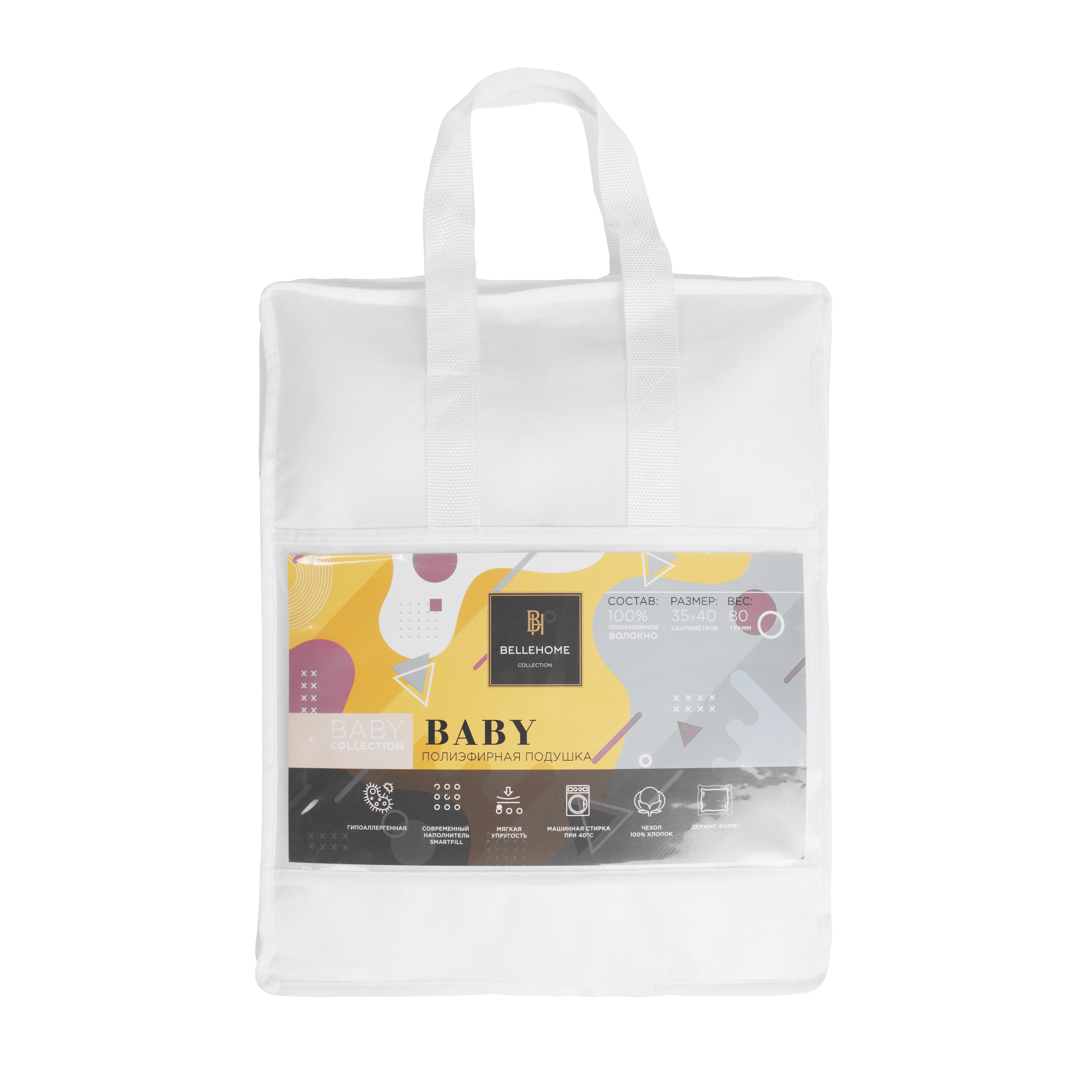 Подушка представлена в двух размерах: 40х60 – идеальна для детской кроватки и использования в домашних условиях, 35х40 – компактна, подойдет для прогулок в коляске, так же удобно взять с собой в дорогу.