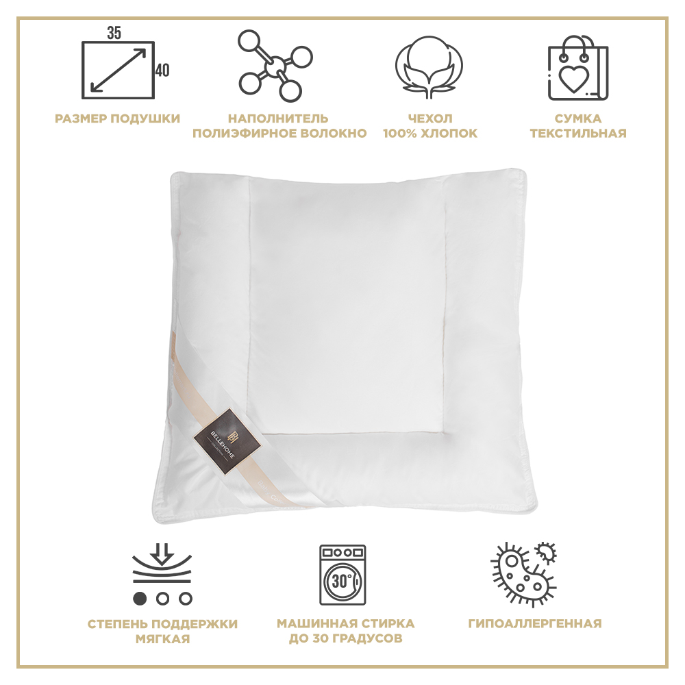 Размеры: 35х40 см (140гр), 40х60 см (360гр). Чехол перкаль 100% хлопок, с предварительной усадкой. Цвет белый.