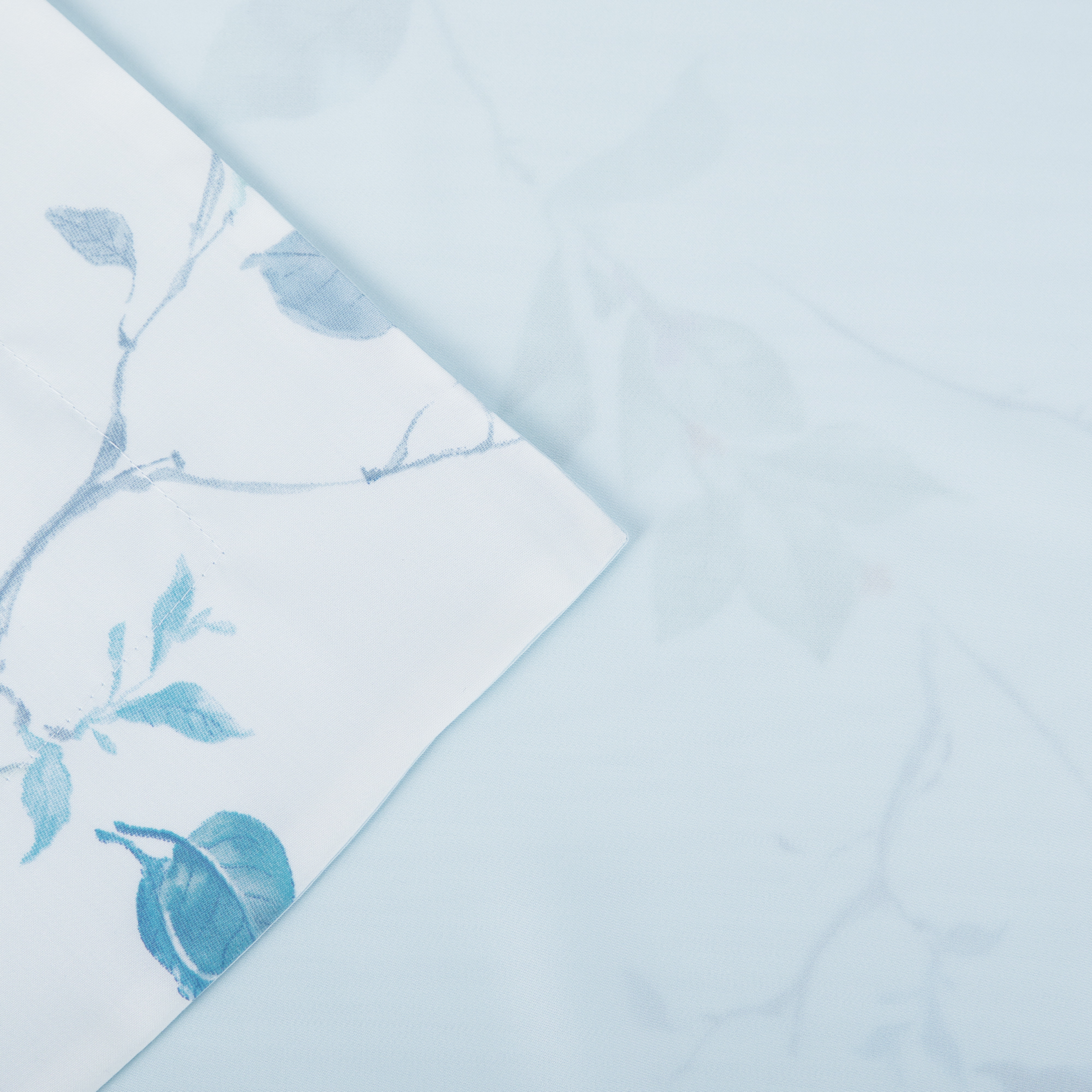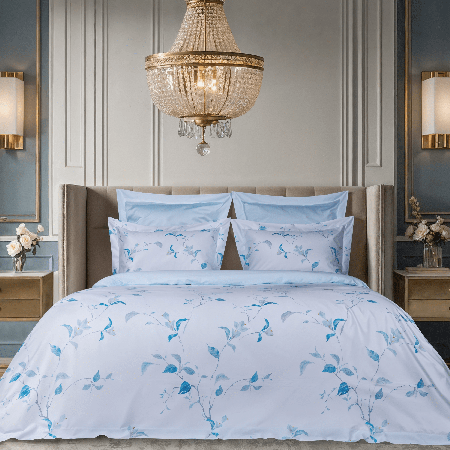 Дизайн комплекта вдохновлен природной свежестью и лёгкостью. Белоснежное полотно украшено акварельными растительными узорами в сине-зелёной гамме. Изящные цветочные мотивы создают атмосферу спокойствия и гармонии. Этот комплект станет прекрасным акцентом в интерьере спальни, придавая ей уют и утонченность.
