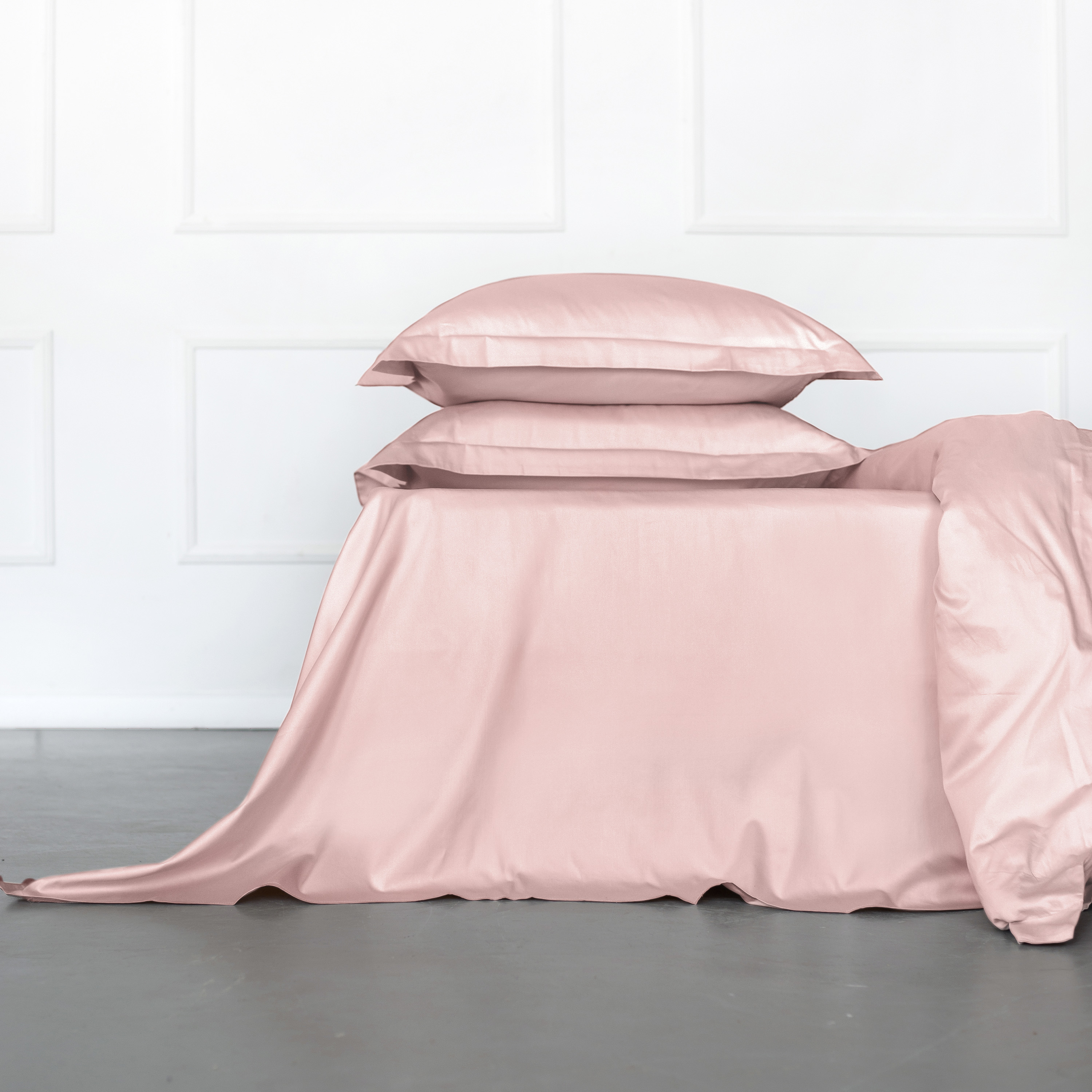 Комплект выполнен в элегантном и лаконичном однотонном персиковом оттенке. Наволочки и пододеяльник оформлены в классическом «оксфордском» стиле с бордюром 5 см по окантовке.