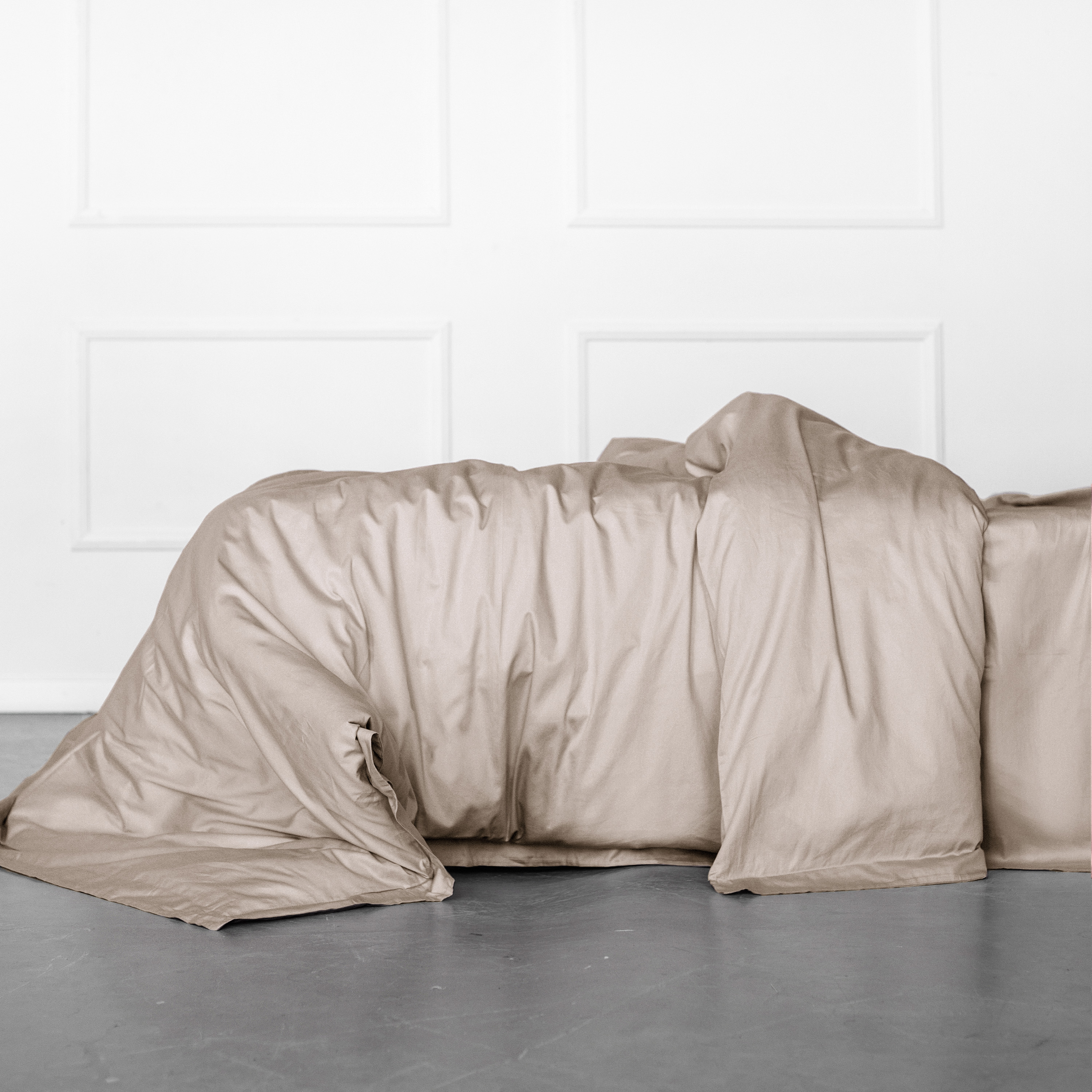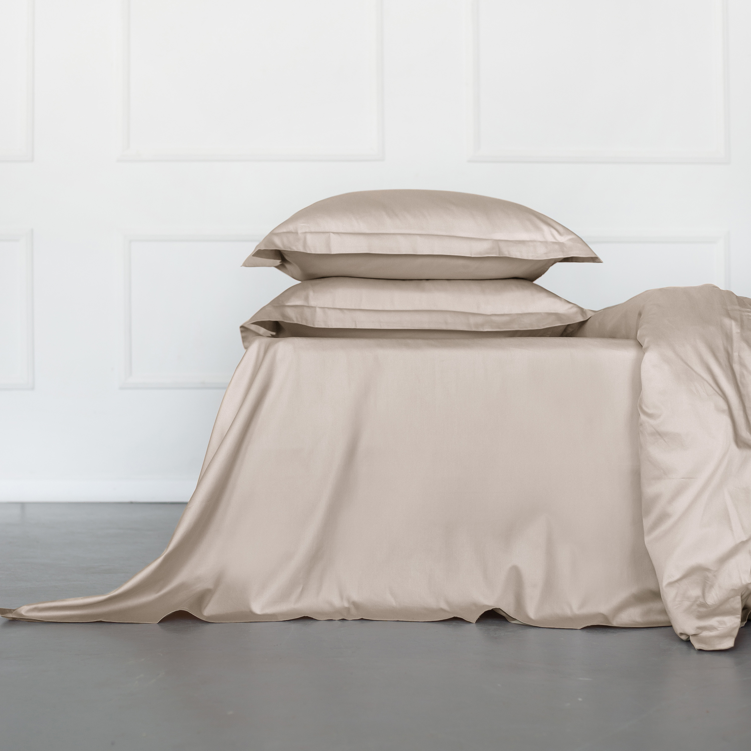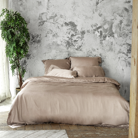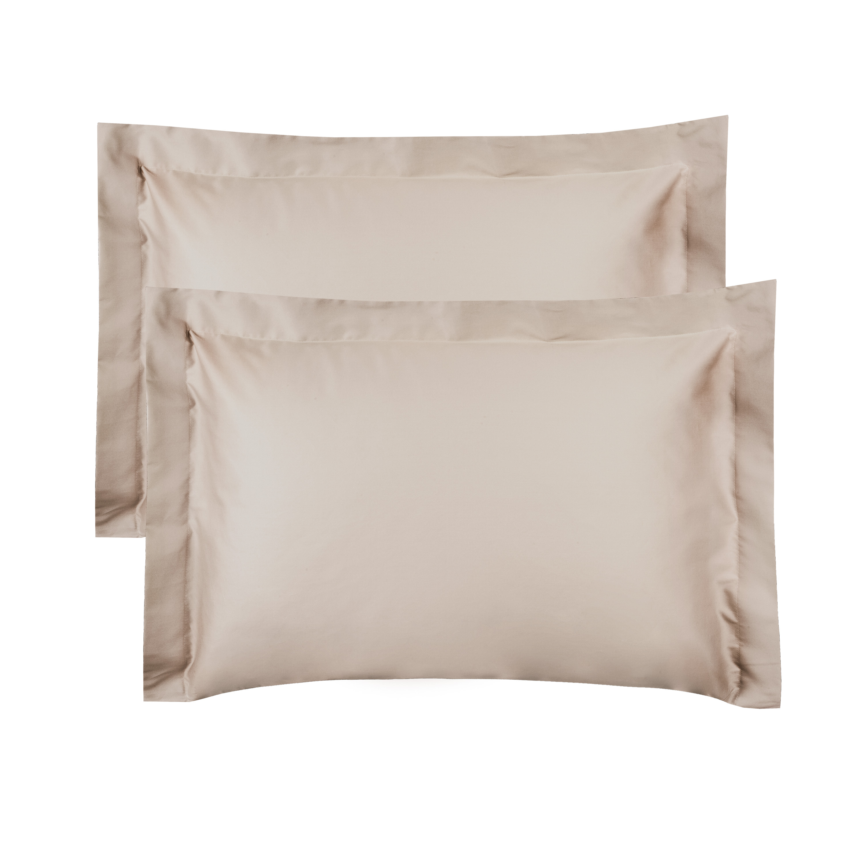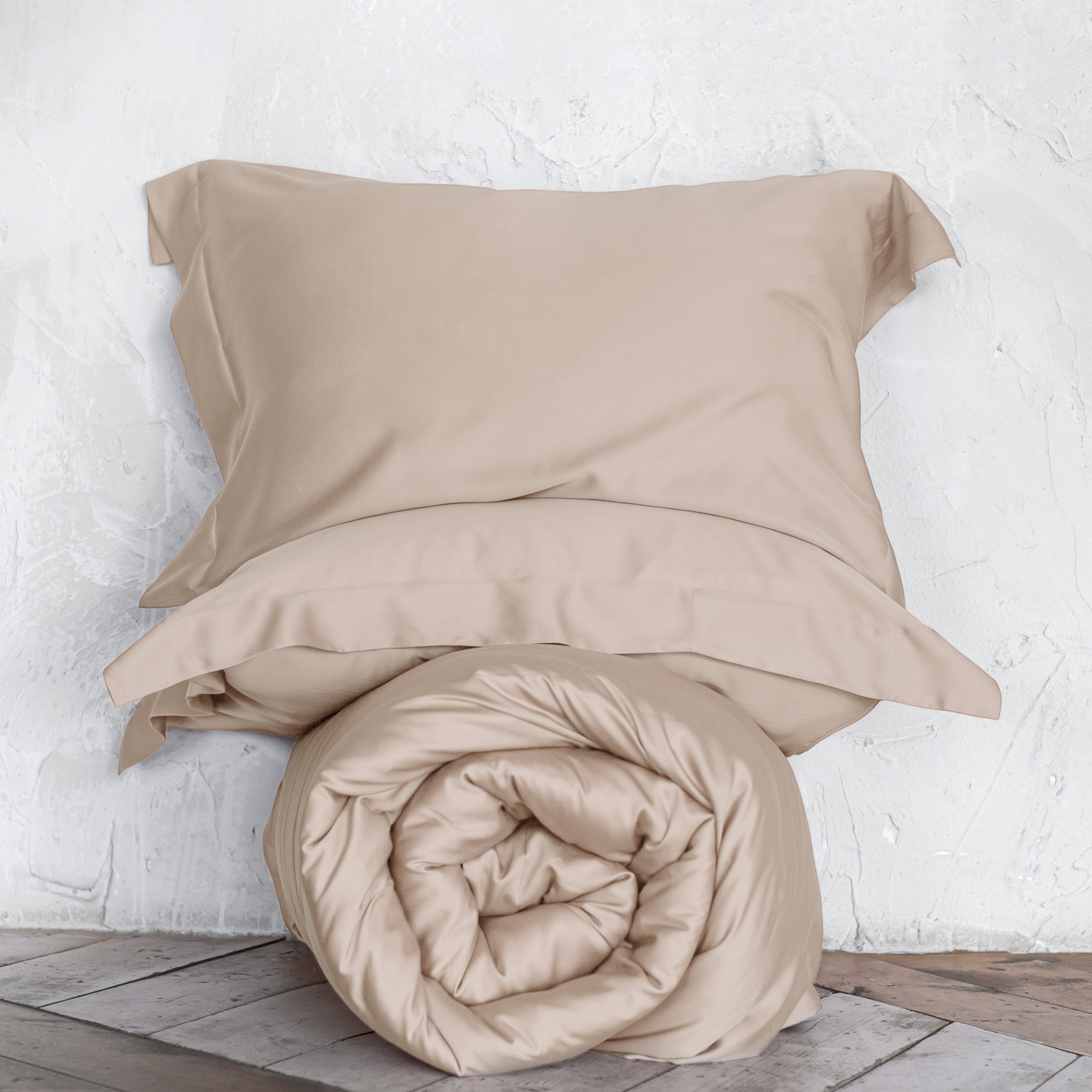 Комплект выполнен в элегантном и лаконичном однотонном бежевом оттенке. Наволочки и пододеяльник оформлены в классическом «оксфордском» стиле с бордюром 5 см по окантовке.