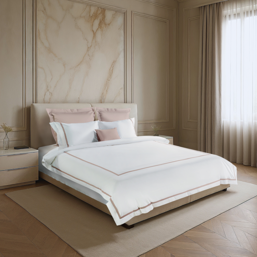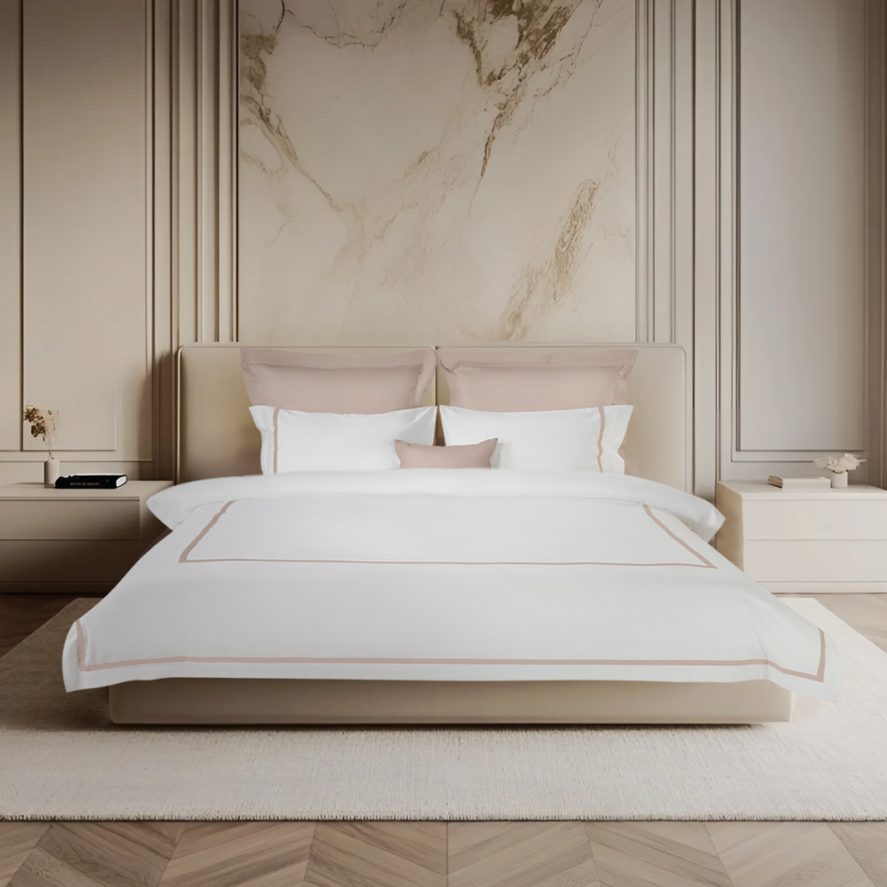 Комплект выполнен из ткани премиального качества 100% натурального длинноволокнистого хлопка-сатина плотностью 300ТС. Натуральная ткань отлично пропускает воздух, а необыкновенная мягкость сатина достигается за счет специальной обработки ткани - мерсеризации, после которой ее лицевая сторона приобретает нежную бархатистую структуру. Система антипиллинга предотвращает появление катышков, а предварительная усадка ткани защищает комплект от деформации.