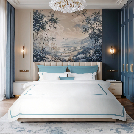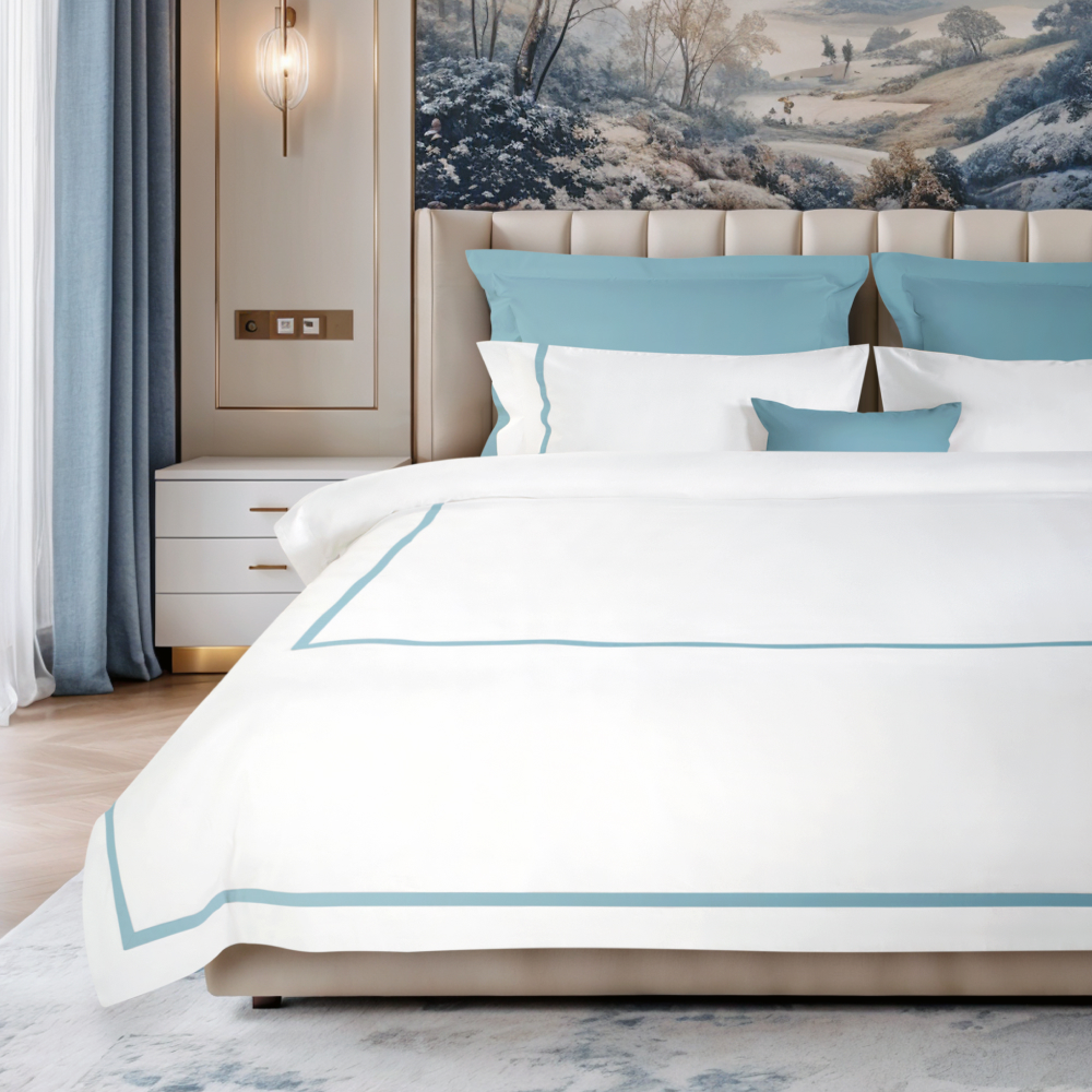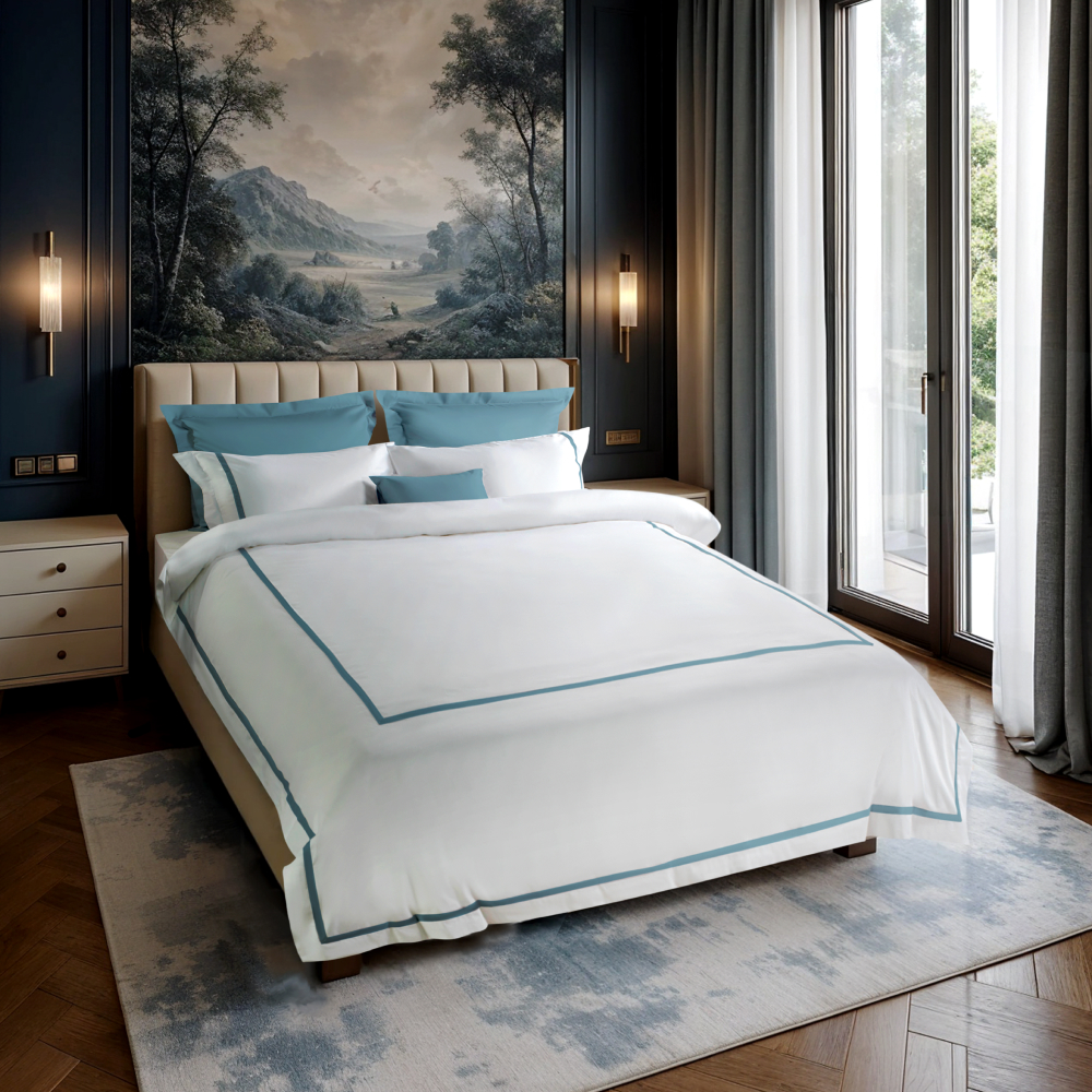 Эксклюзивный комплект постельного белья Ноктюрн Azure выполнен в элегантном минималистичном стиле. Основной цвет — нежный белый, создающий ощущение чистоты и уюта, гармонично сочетается с акцентам темно-бирюзового. Лаконичный дизайн с аккуратной отделкой подчеркивает его элегантность и делает его идеальным выбором для тех, кто ценит комфорт и качество.