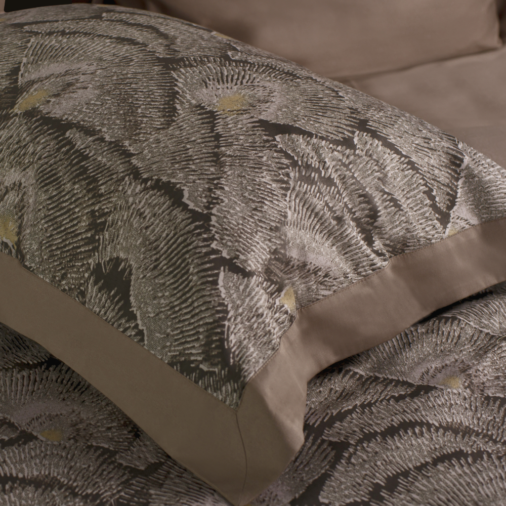 Комплект постельного белья Кассандра изготовлен из 100% длинноволокнистого хлопка, сатинового переплетения высокой плотности 300ТC. Комплект по тактильным ощущениям мягкий и гладкий, с шелковистым блеском. Натуральные волокна не вызывают раздражения кожи, ткань отлично пропускает воздух и обеспечивает здоровый, крепкий сон. Специальная обработка ткани — мерсеризация сохраняет краски и первоначальный тон комплекта, система антипиллинга предотвращает появление катышков, а предварительная усадка ткани защищает комплект от деформации. Комплект постельного белья Кассандра представлен в изысканном дизайне. Основной цвет — благородный серо-зеленый, который создает ощущение уюта и спокойствия. Ткань украшена абстрактным узором, что добавляет элегантности и утонченности.Тыльная сторона коричневого цвета. Изысканность комплекту придают декоративные ушки из той же ткани, выполненные в «оксфордском» стиле по периметру наволочек и пододеяльника. Комплект продается в фирменной коробке и может быть преподнесен в качестве подарка.