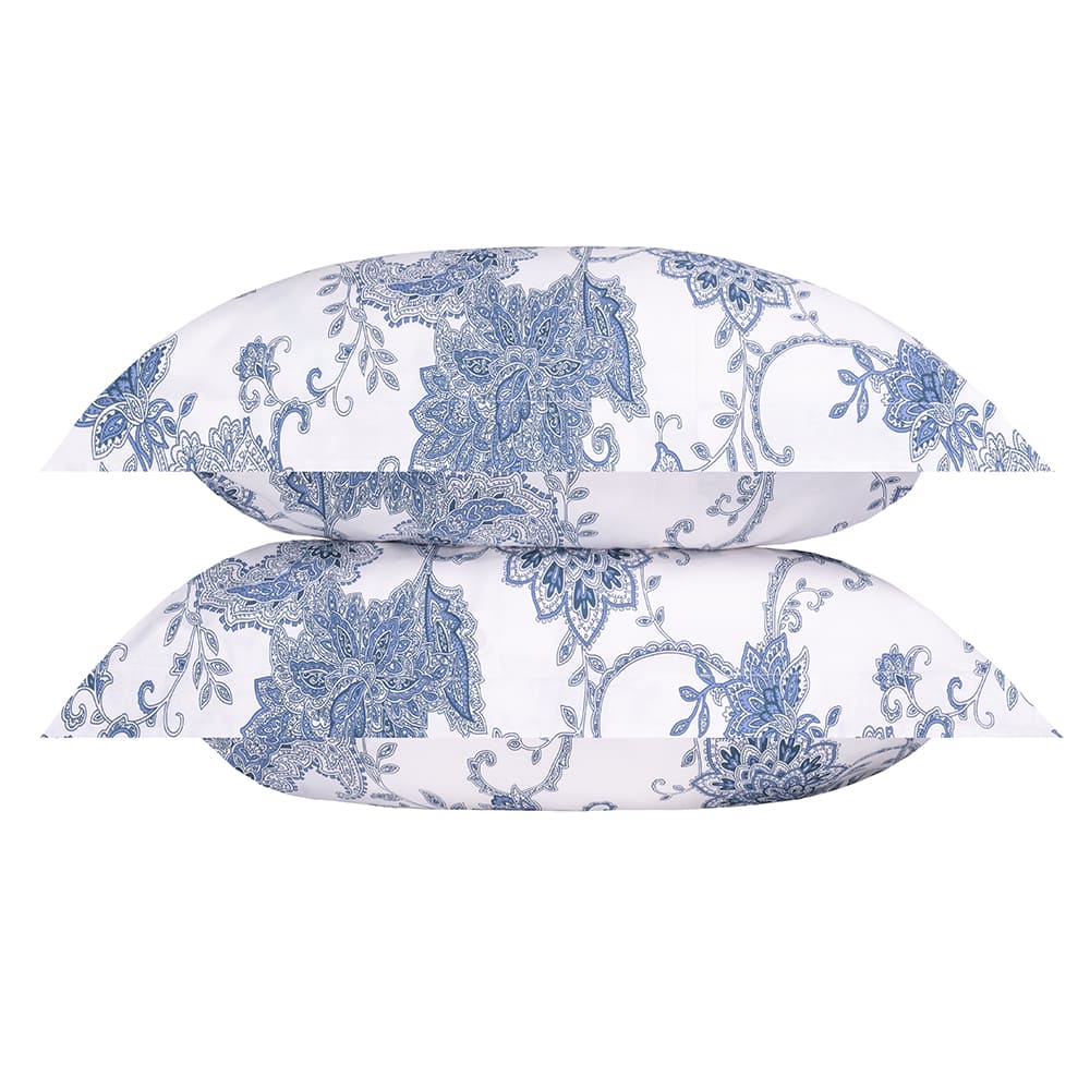 Натуральная ткань отлично пропускает воздух, а необыкновенная мягкость достигается за счет специальной обработки — мерсеризации, после которой они приобретают нежную бархатистую структуру. Наволочки украшены ярким синим орнаментом и будут великолепно смотреться в Вашем интерьере.