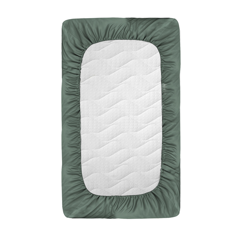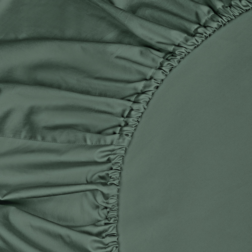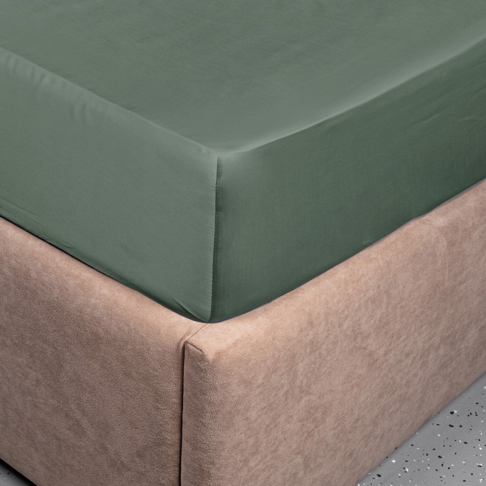 Простыня на резинке Shiny Pine выполнена в элегантном и лаконичном однотонном дизайне насыщенного хвойного оттенка зеленого в размерах 160х200х20 см и 180х200х20 см.