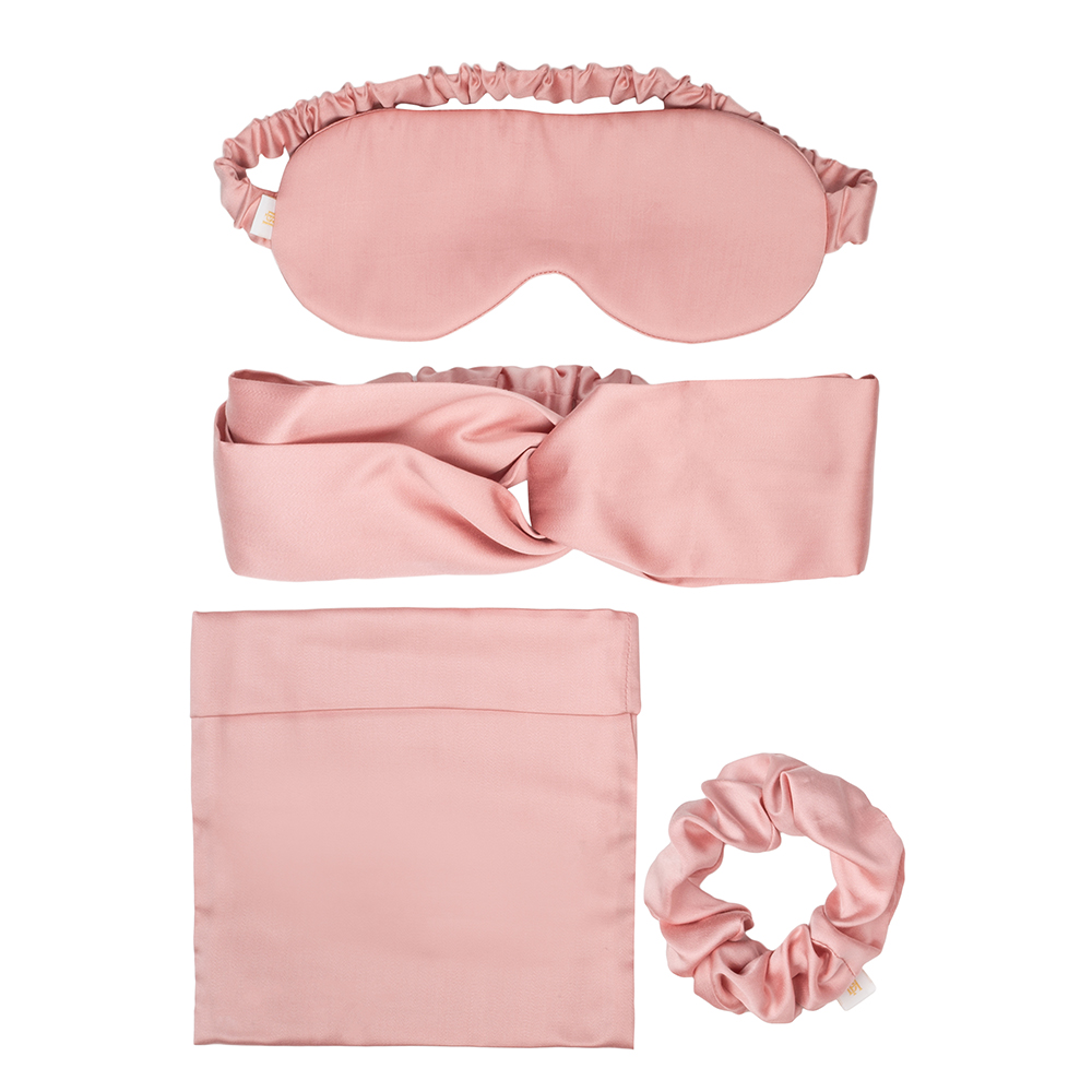 В подарочный бьюти-набор для сна Shiny Rose входит маска для сна на глаза, повязка на голову, резинка для волос, мини-сумочка, стильная крафтовая подарочная коробка.