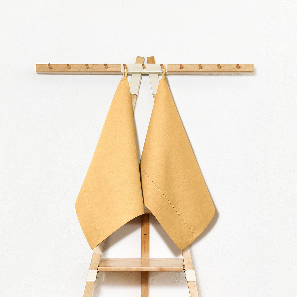 В состав комплекта входит 2 кухонных полотенца размером 40х70 см, охрового оттенка.