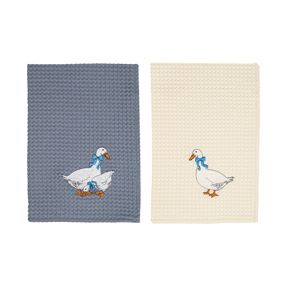 Комплект «Гуси Бернадотт» выполнен из высококачественного хлопка графитового и кремового цвета. Каждое полотенце украшает уникальная вышивка в виде милых гусей. Вафельные полотенца BELLEHOME — это практичность, комфорт и уют!