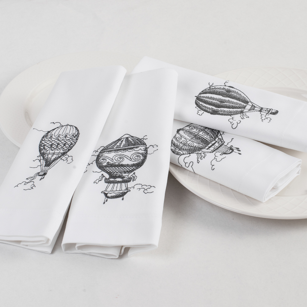 Изготовлены из 100% хлопка, размера 45х45 см, в комплекте 4 шт. Детали: оформлены эксклюзивной аппликационной вышивкой в виде воздушных шаров на высокоточном оборудовании в России.