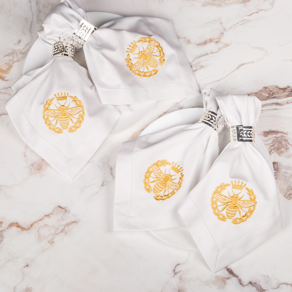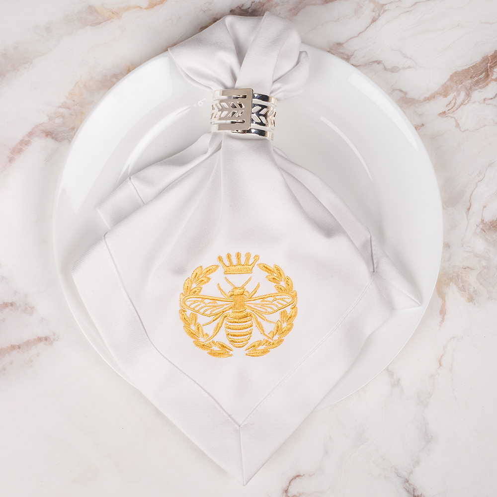 Салфетка столовая с вышивкой Золотая пчелка от BELLEHOME - это вдохновение самой природы, они несомненно украсят ваш стол и подарят ощущение праздника. Изготовлены из 100% льна, удобного размера 45х45 см - они станут изюминкой вашего торжества. Салфетки оформлены эксклюзивной аппликационной вышивкой на высокоточном оборудовании в России. По периметру декоративная строчка - "мережка".