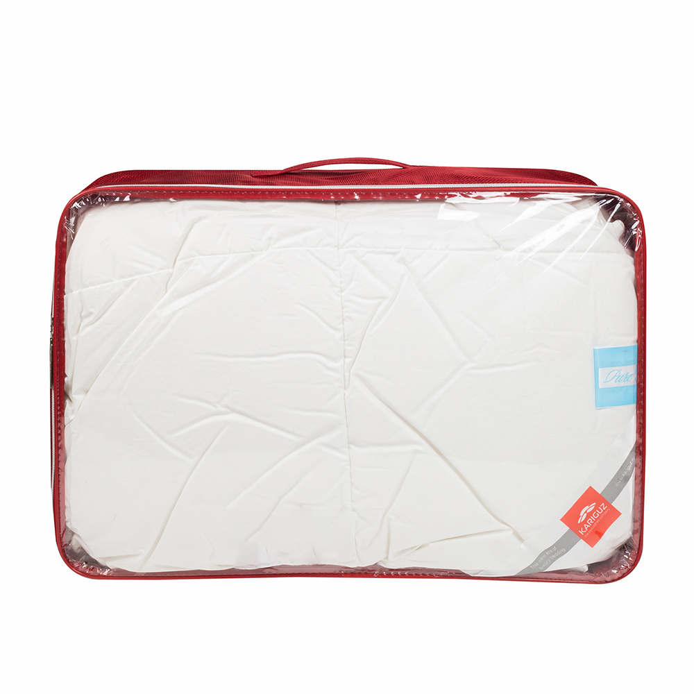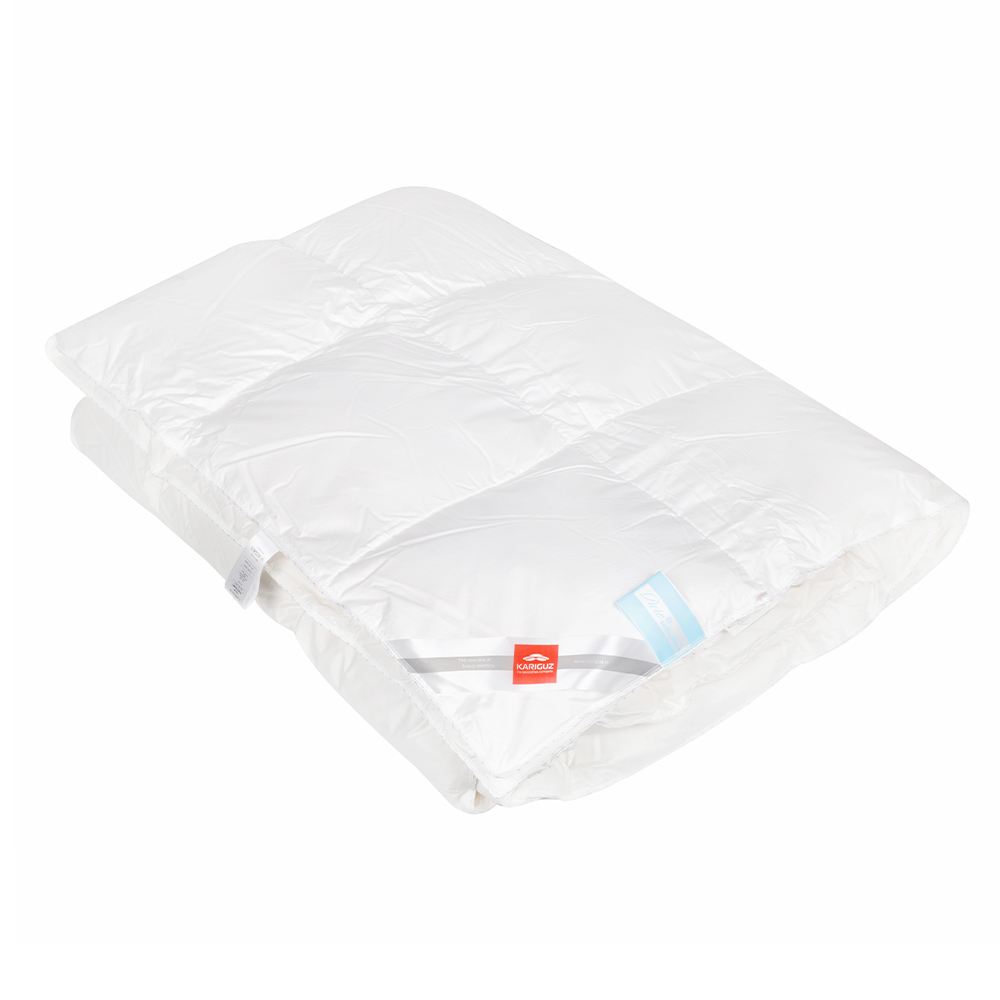 Качественное одеяло должно быть легким, теплым, мягким и воздушным. Запатентованная KARIGUZ технология обработки сырья High-Tec Processing сохраняет природные свойства гусиного пуха. Крупные, бережно отобранные пушины становятся основой для наполнителя, наделяя его легкостью, объемом и комфортом. Качественное одеяло должно быть легким и воздушным. Плетение нити «downproof» придают хлопковым волокнам большую прочность, пухонепроницаемость, долговечность и практически идеальную способность к впитыванию влаги.