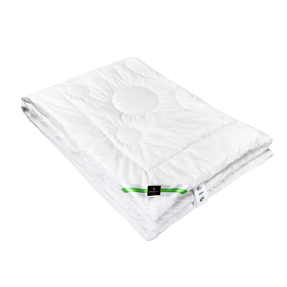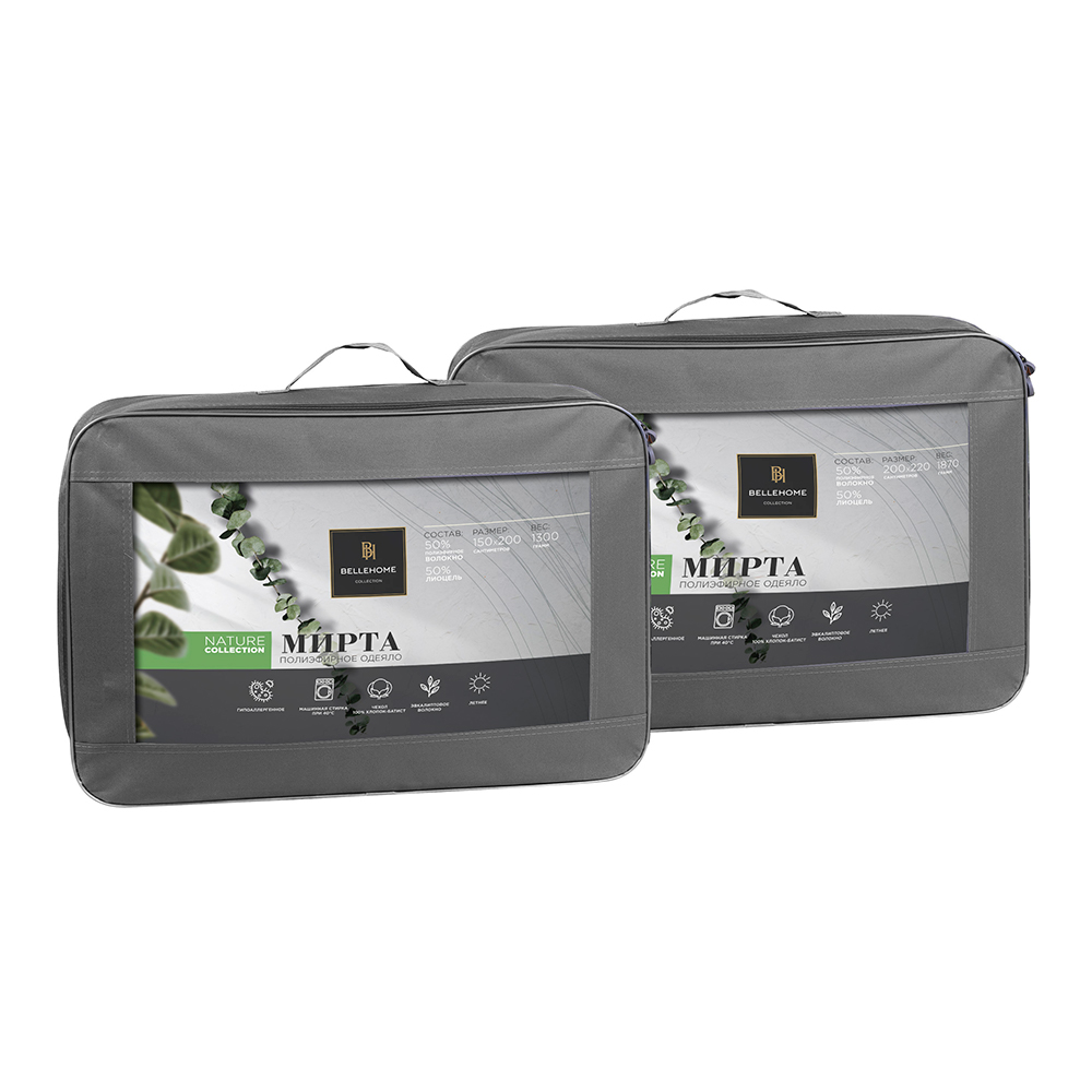 Одеяло «Мирта» изготовлено из экологически чистых материалов: верхний чехол выполнен из органического хлопка, а наполнитель из лиоцеля и высоко извитого полиэфирного силиконизированного волокна. Лиоцель – целлюлозное волокно эвкалиптового дерева – прочный, гипоаллергенный материал, который прекрасно пропускает воздух и абсорбирует влагу. Nanofibre – легкое, воздушное, простое в уходе и, что немаловажно, гигроскопичное волокно. Изделие упаковано в фирменную сумку-чемодан на молнии.