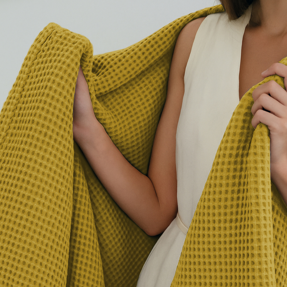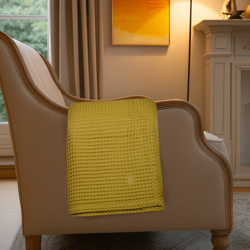 Создайте уют в любом уголке вашего дома с вафельным пледом Горчица с вышивкой BH.  Это не просто стильный аксессуар, а идеальное сочетание комфорта, натуральности и элегантности. Материал 100% хлопок – мягкий, дышащий и гипоаллергенный, не раздражает кожу. Размер пледа:  150×200 – оптимален для укрывания, использования на диване или в кресле. Сдержанный горчичный оттенок и  лаконичная вышивка добавляют элегантности. Универсален – подходит для прохладных вечеров и летних веранд. Невероятно мягкий – хлопковая вафельная ткань приятна к телу, не электризуется, отлично греет, но не перегружает – благодаря структуре плетения обеспечивает комфортный микроклимат. Легкий уход – можно стирать в машинке, быстро сохнет. Для дома, путешествий, пикников и морских прогулок. Подарите себе тепло и уют с вафельным пледом Bellehome