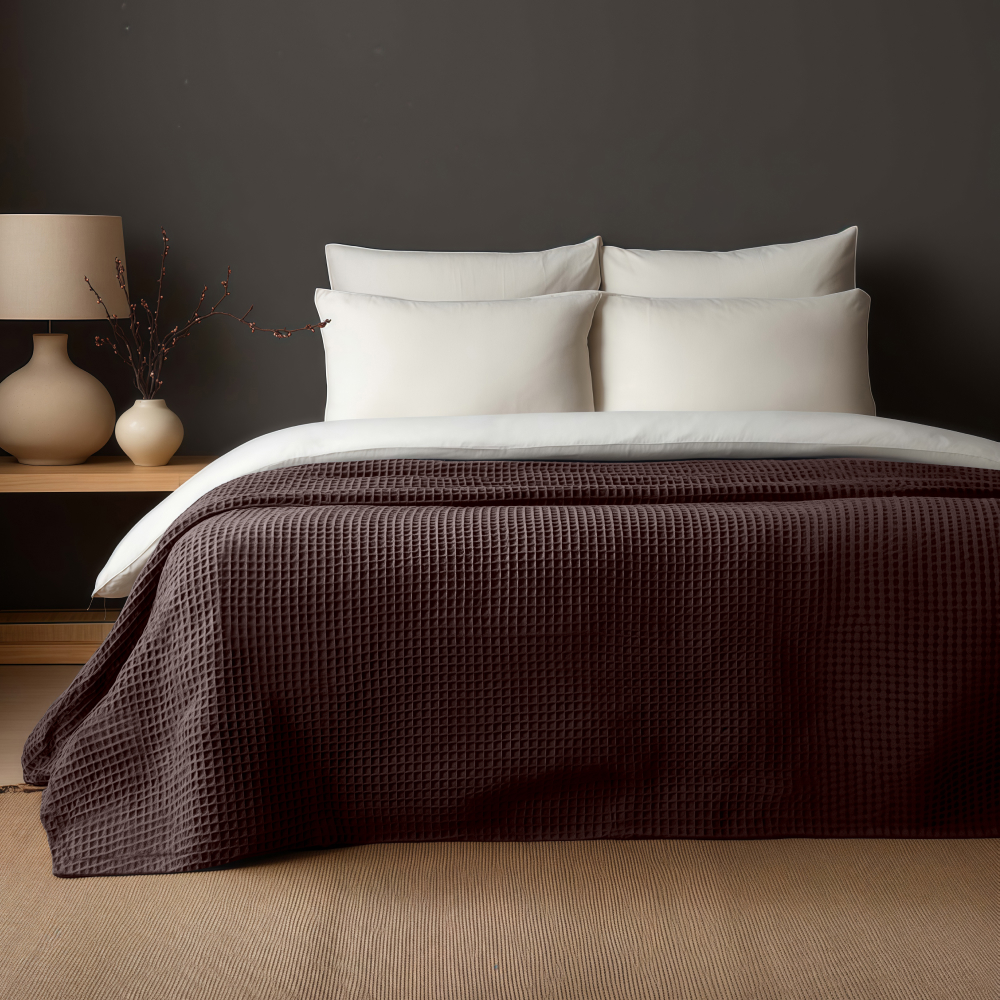 Создайте уют в любом уголке вашего дома с вафельным пледом Шоколад с вышивкой BH.  Это не просто стильный аксессуар, а идеальное сочетание комфорта, натуральности и элегантности. Материал 100% хлопок – мягкий, дышащий и гипоаллергенный, не раздражает кожу. Размер пледа:  150×200 – оптимален для укрывания, использования на диване или в кресле. Сдержанный шоколадный оттенок и  лаконичная вышивка добавляют элегантности. Универсален – подходит для прохладных вечеров и летних веранд. Невероятно мягкий – хлопковая вафельная ткань приятна к телу, не электризуется, отлично греет, но не перегружает – благодаря структуре плетения обеспечивает комфортный микроклимат. Легкий уход – можно стирать в машинке, быстро сохнет. Для дома, путешествий, пикников и морских прогулок. Подарите себе тепло и уют с вафельным пледом Bellehome