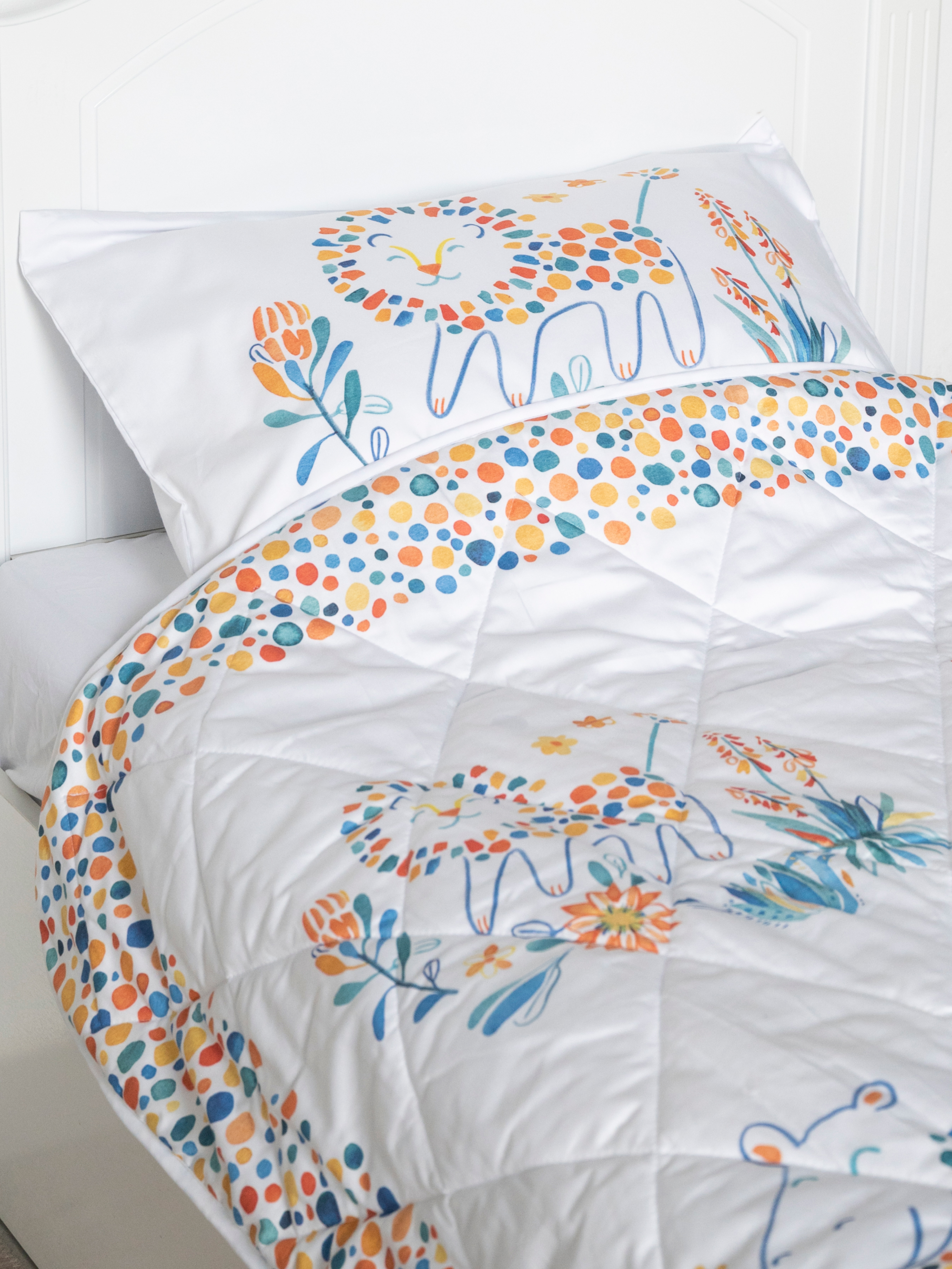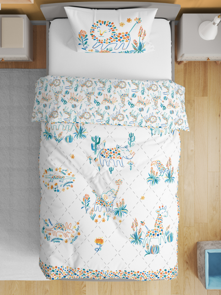 Детское покрывало с наволочкой «Сафари» от BELLEHOME — полёт фантазии и невероятный комфорт, собранные в одном. В нашем дизайнерском бюро разработали эксклюзивные принты для юных мечтателей. Воплощены в жизнь с помощью цифровой высококачественной печати гипоаллергенными красками!