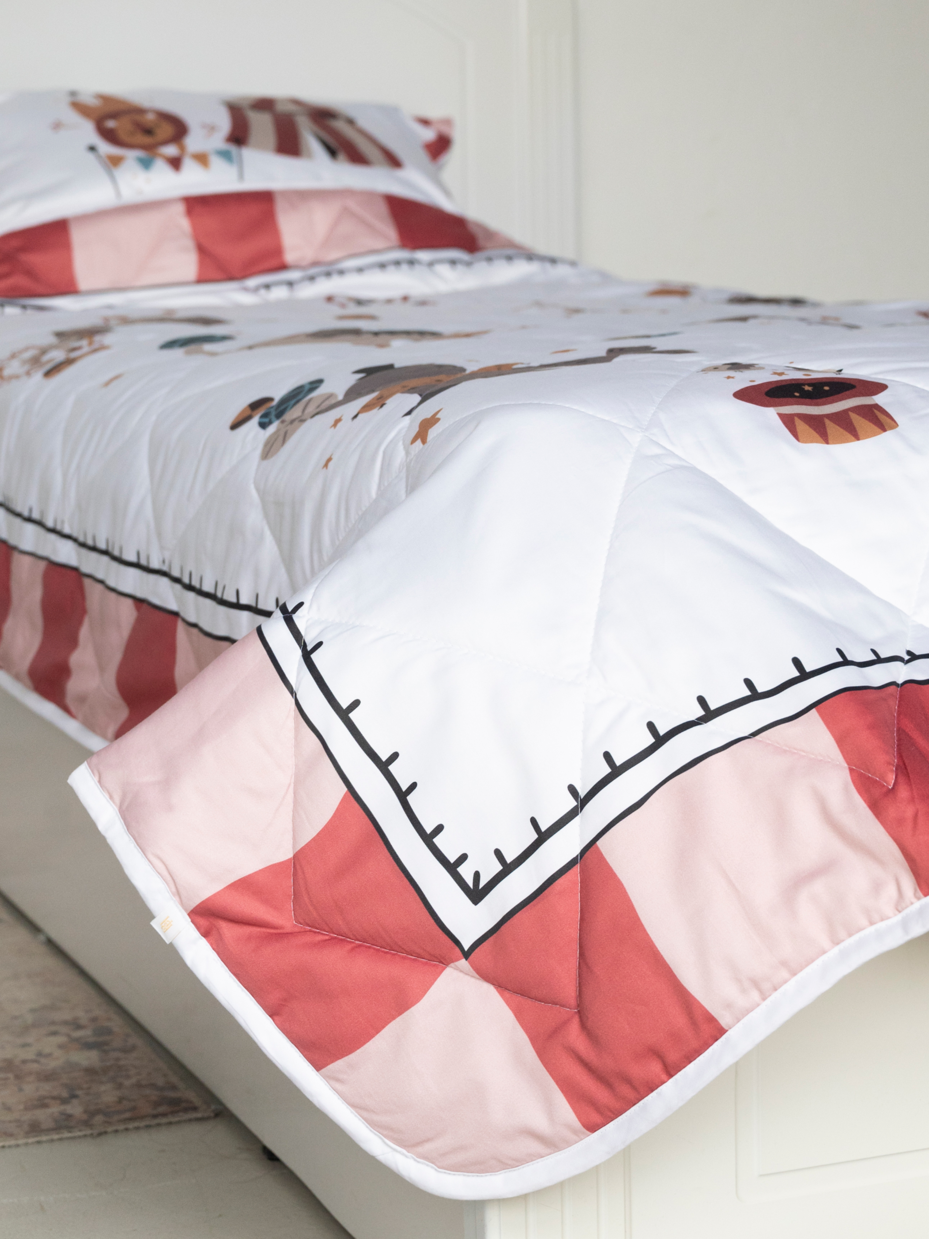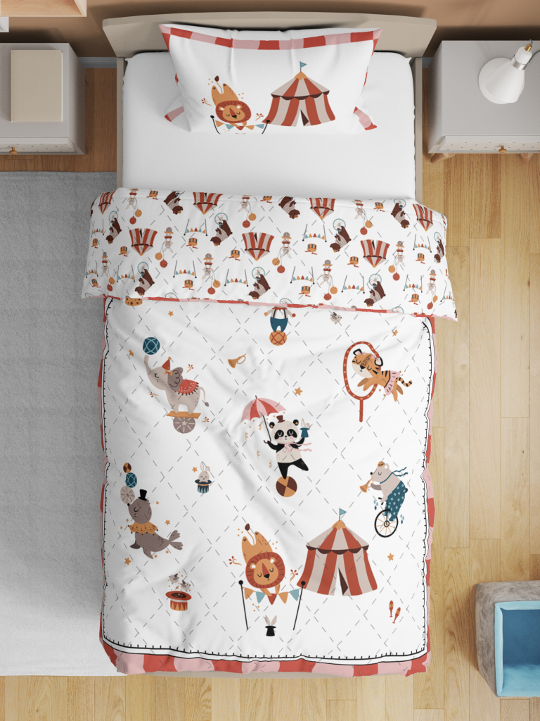 Детское покрывало с наволочкой «Цирк» от BELLEHOME — полёт фантазии и невероятный комфорт, собранные в одном. В нашем дизайнерском бюро разработали эксклюзивные принты для юных мечтателей. Воплощены в жизнь с помощью цифровой высококачественной печати гипоаллергенными красками!