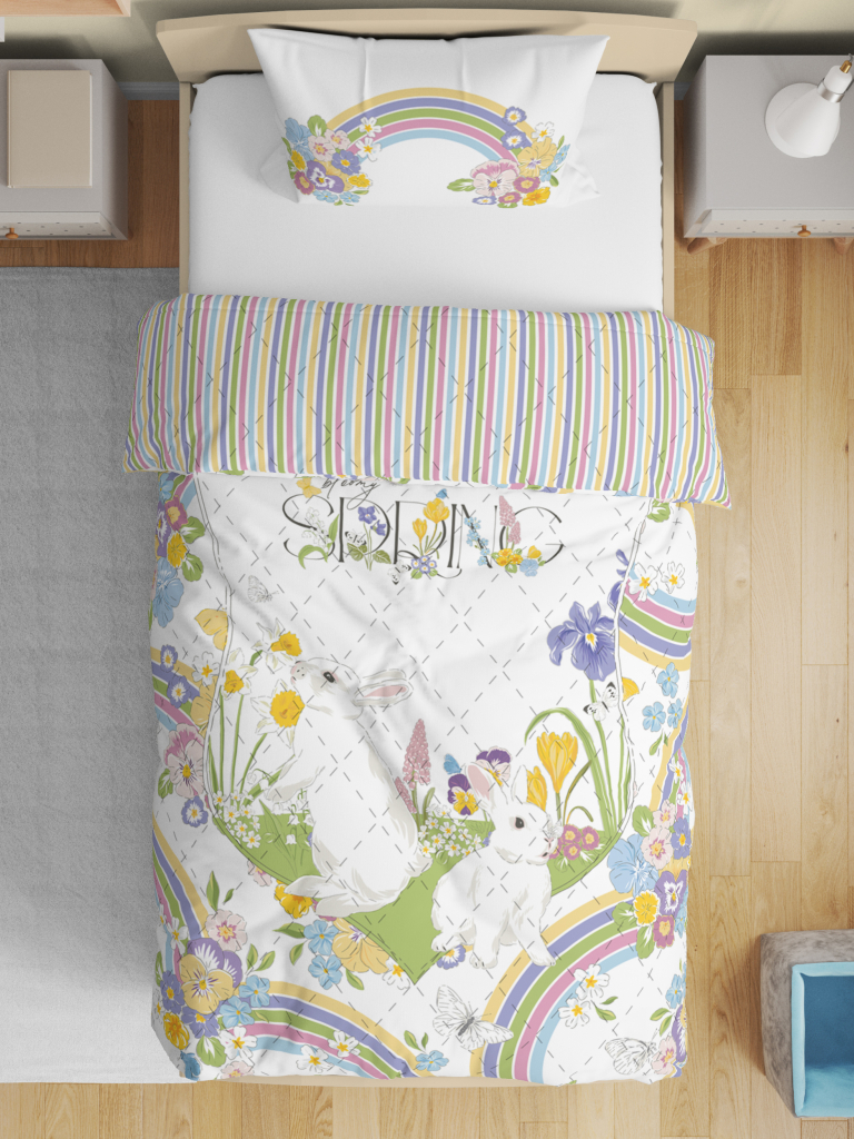 Детское покрывало с наволочкой «Радужная зайка» от BELLEHOME — полёт фантазии и невероятный комфорт, собранные в одном. В нашем дизайнерском бюро разработали эксклюзивные принты для юных мечтателей. Воплощены в жизнь с помощью цифровой высококачественной печати гипоаллергенными красками!
