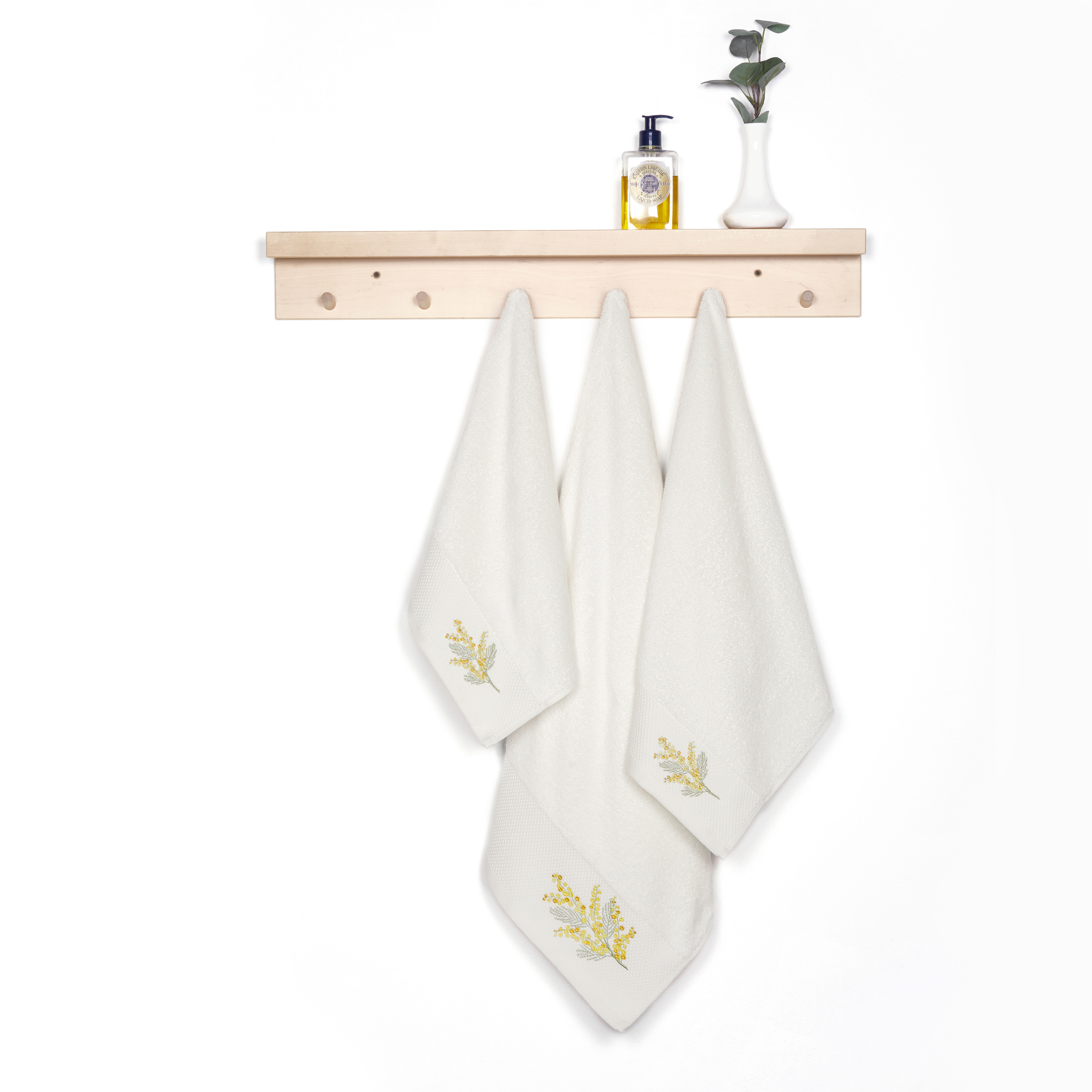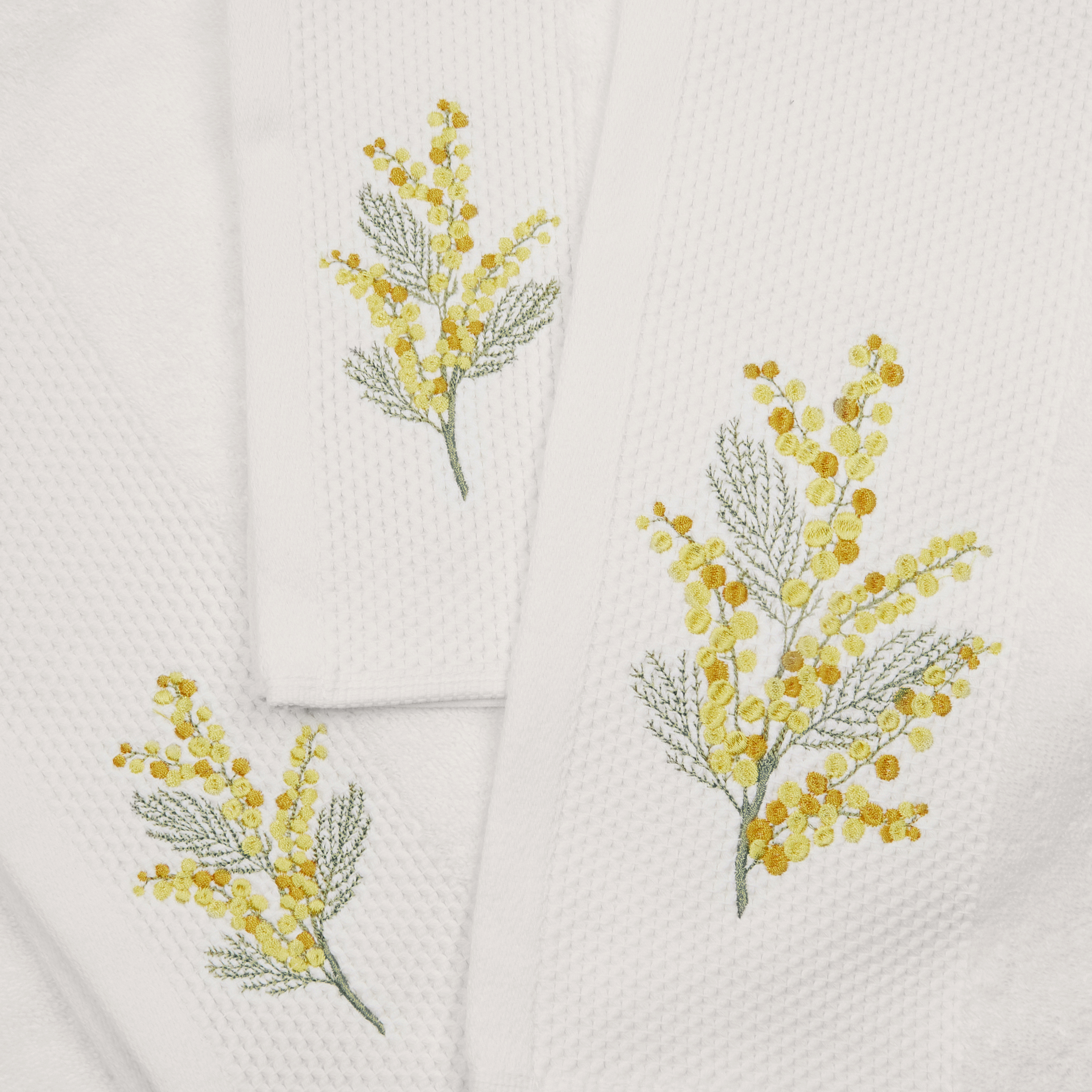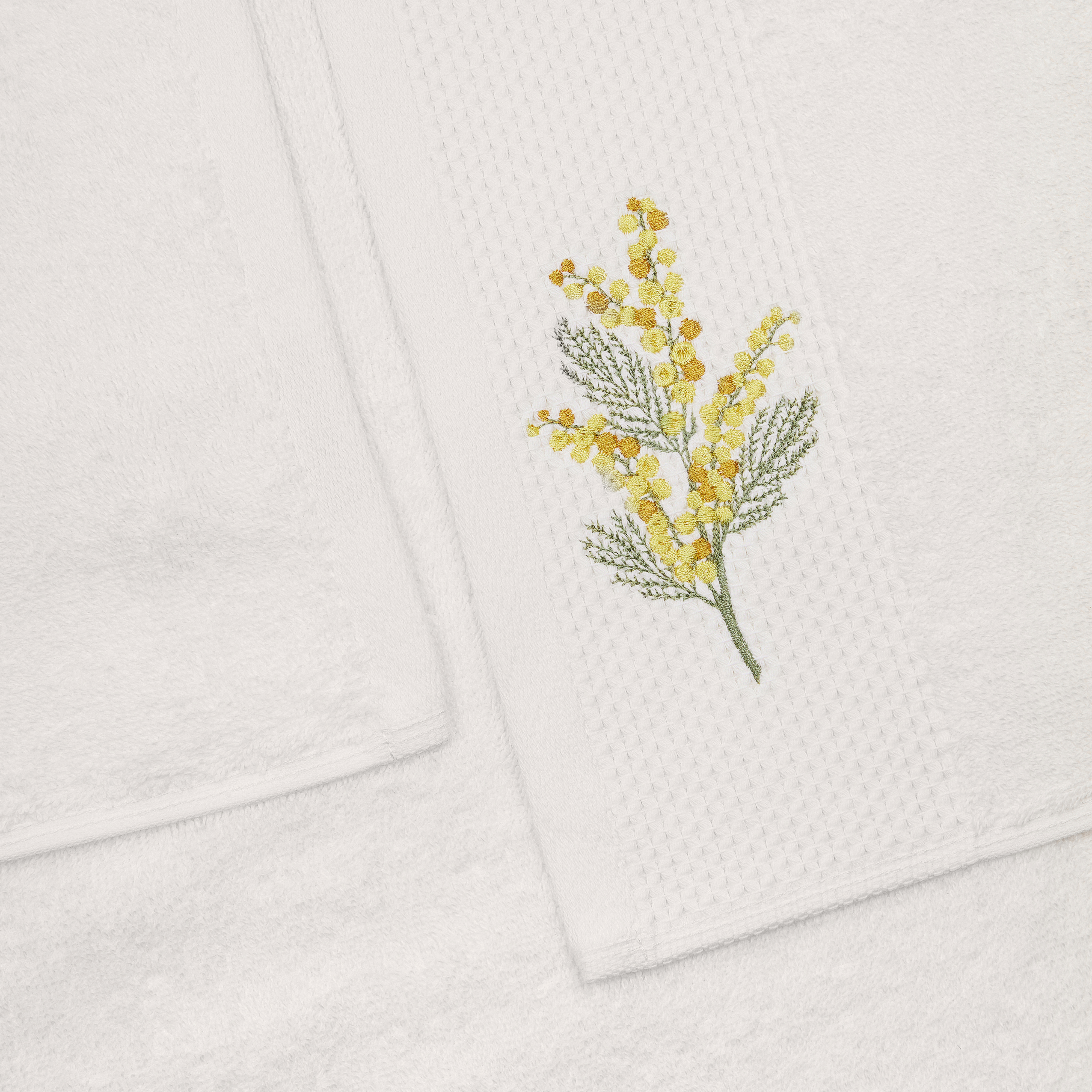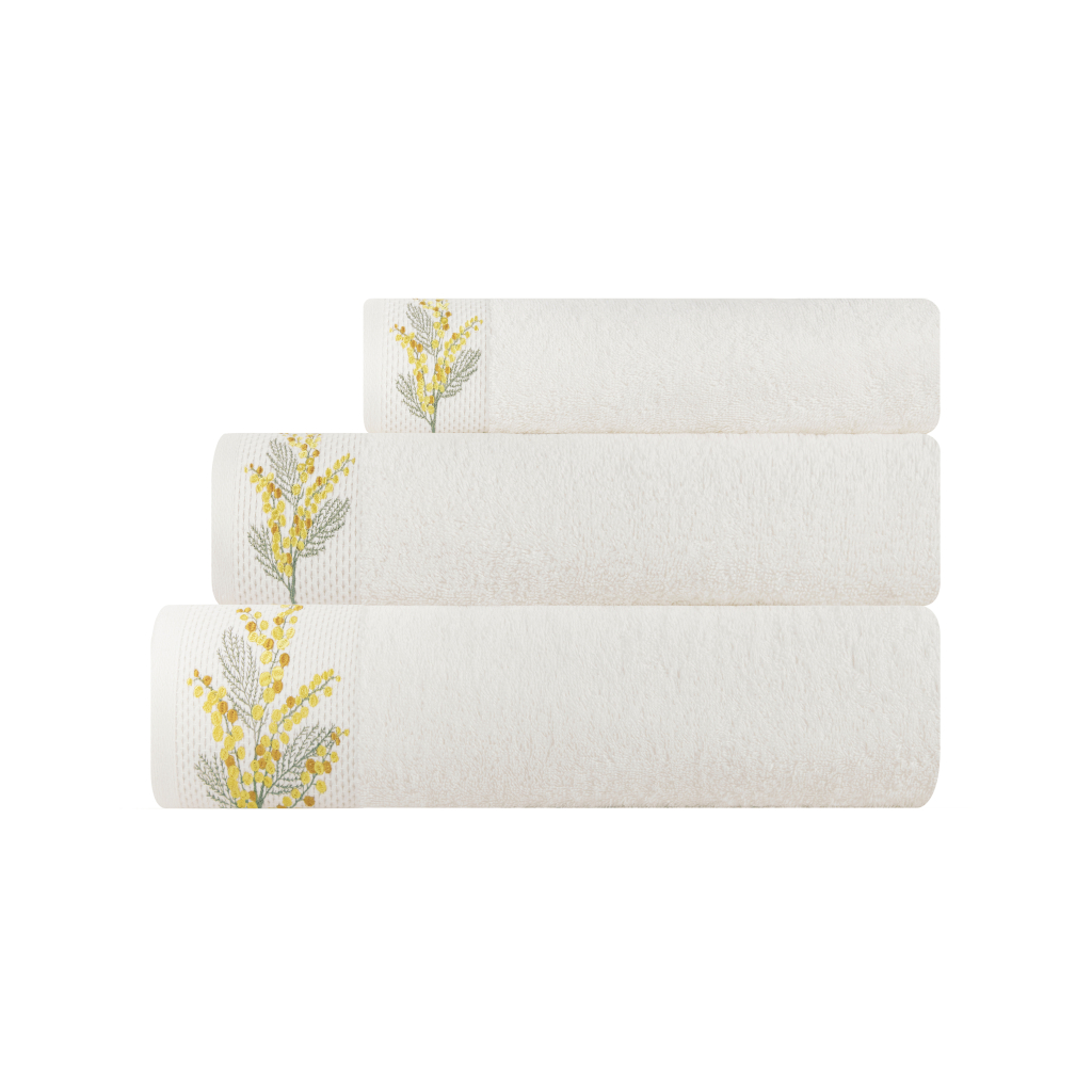 Набор полотенец махровых изготовлен из 100% нежнейшего хлопка и станет приятным завершением водных процедур. Натуральный состав отлично впитывает влагу, а густой слой махровых петель 500 гр/м² делает полотенца приятными на ощупь для лица и тела. Выполнены в молочном оттенке с лаконичным декором в виде тисненого бордюра с вышивкой мимозы. А благодаря высокому качеству наши банные полотенца сохранят цвет и форму даже после многочисленных стирок.