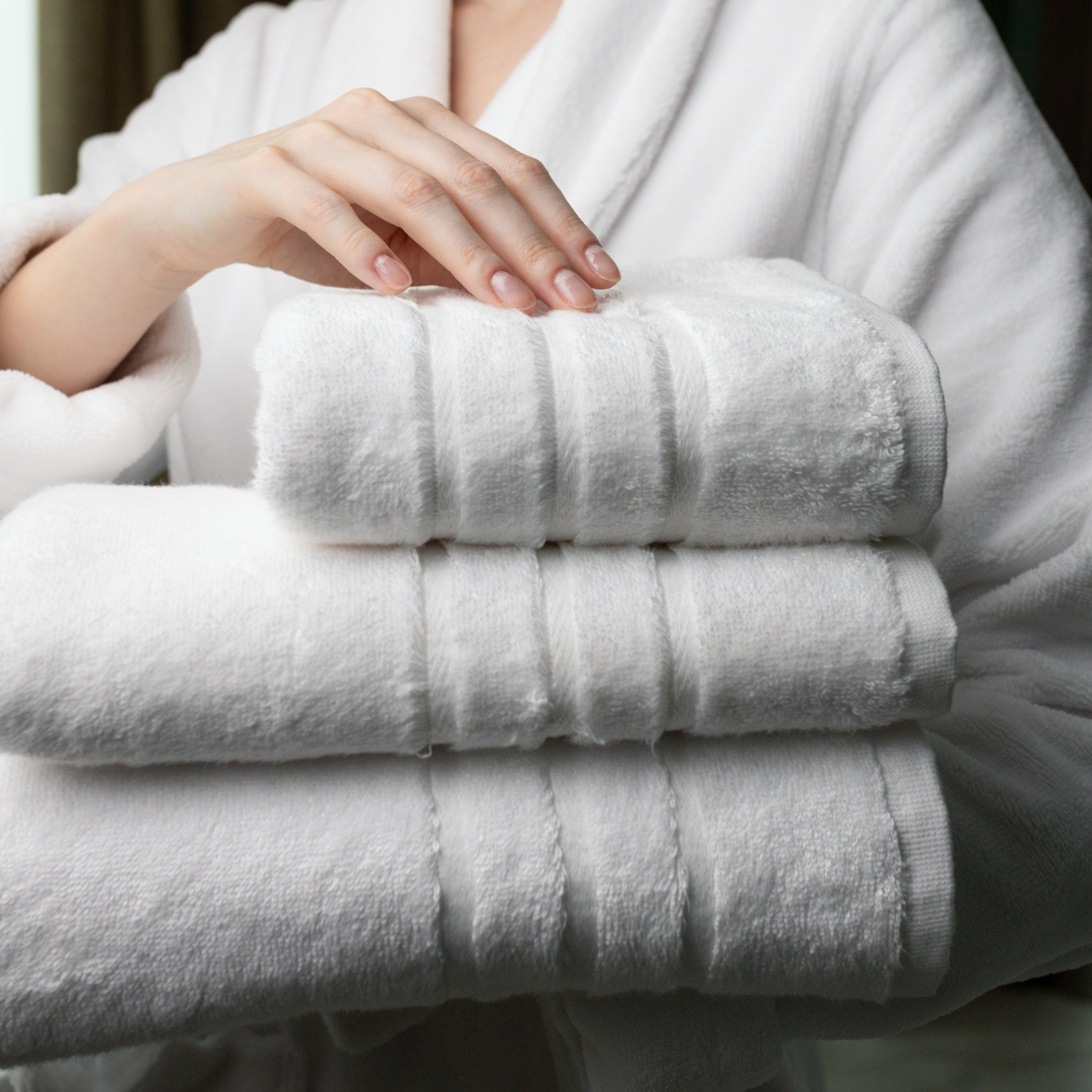 Набор полотенец махровых изготовлен из смеси натурального бамбука и премиального хлопка повышенной плотности. Хорошо впитывает влагу, а плотный и густой слой махровых петель 600 гр/м² делает полотенца приятными на ощупь для лица и тела. Бамбук обладает уникальным свойством отталкивать от себя грязь, имеет высокую износостойкость и антибактериальные свойства. Выполнены в классическом белом цвете с плотным бортиком по периметру, а благодаря высокому качеству наши банные полотенца сохранят цвет и форму даже после многочисленных стирок.