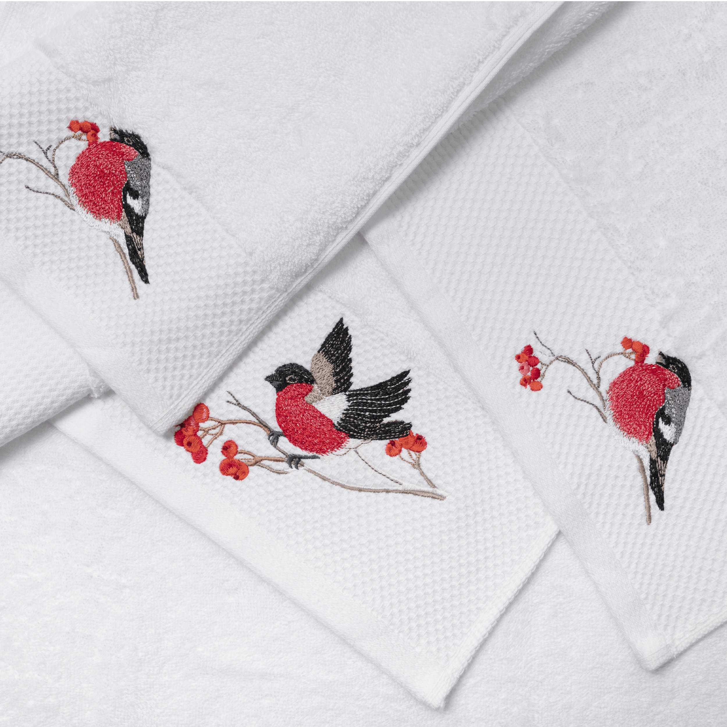 Набор полотенец махровых изготовлен из 100% нежнейшего хлопка и станет приятным завершением водных процедур. Натуральный состав отлично впитывает влагу, а густой слой махровых петель 500 гр/м² делает полотенца приятными на ощупь для лица и тела. Выполнены в классическом белом цвете с лаконичным декором в виде тисненого бордюра с оригинальной зимней вышивкой, а благодаря высокому качеству наши банные полотенца сохранят цвет и форму даже после многочисленных стирок.