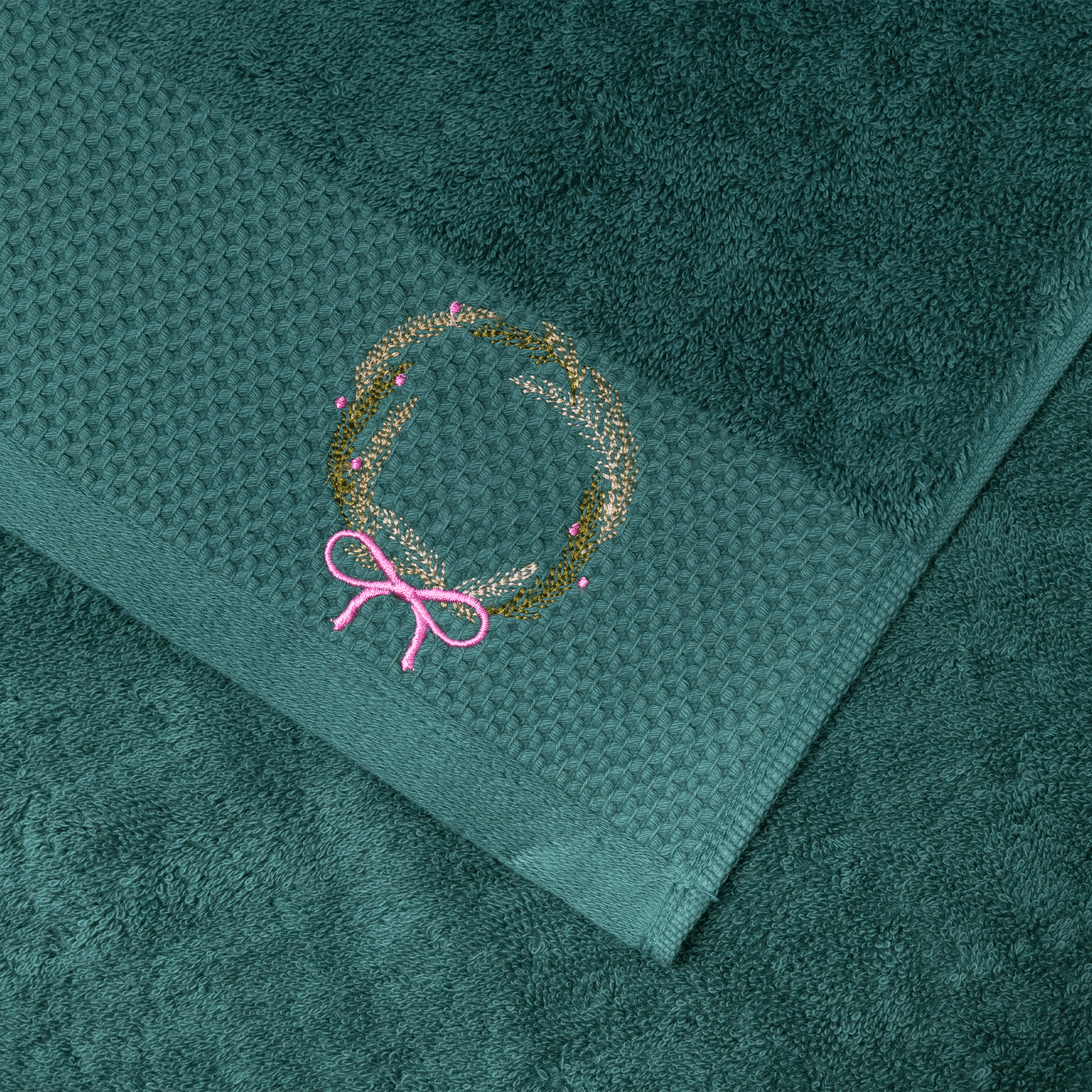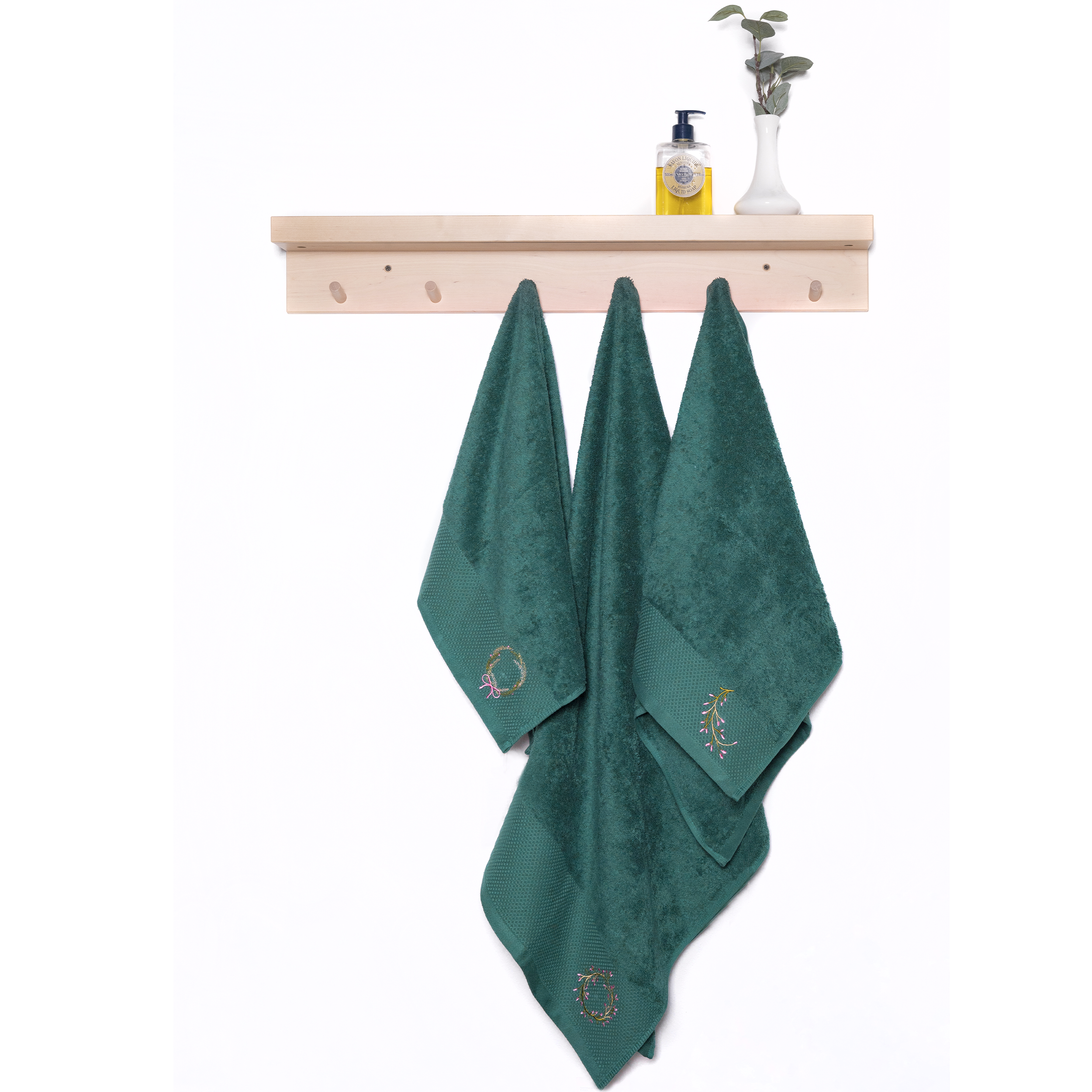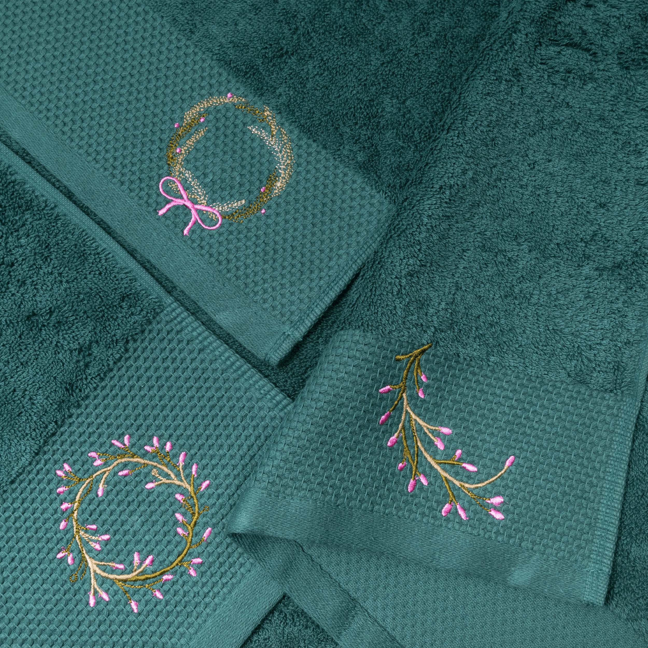 Набор полотенец махровых изготовлен из 100% нежнейшего хлопка и станет приятным завершением водных процедур. Натуральный состав отлично впитывает влагу, а густой слой махровых петель 500 гр/м² делает полотенца приятными на ощупь для лица и тела. Выполнены в изумрудном цвете с лаконичным декором в виде тисненого бордюра с новогодней вышивкой. А благодаря высокому качеству наши банные полотенца сохранят цвет и форму даже после многочисленных стирок.