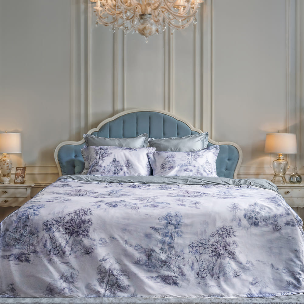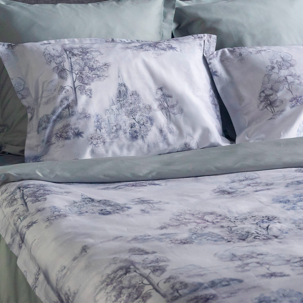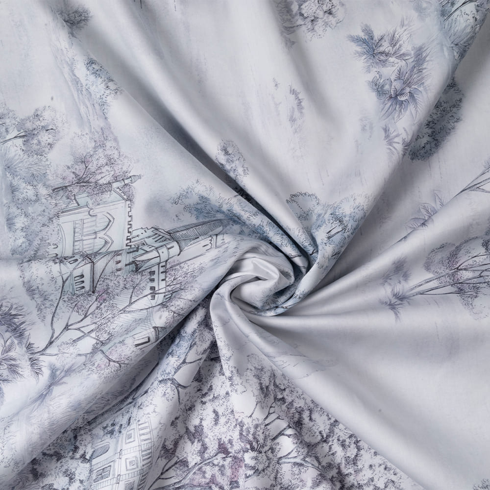 Комплект постельного белья Жуи от BELLEHOME изготовлен из 100% длинноволокнистого хлопка сатинового переплетения высокой плотности 300ТC. Комплект сатин премиум тактильно приятен, мягкий и гладкий, с шелковым блеском. Благодаря натуральным волокнам станет прекрасным выбором для любителей комфорта: не вызывает раздражения кожи, отлично пропускает воздух и обеспечивает здоровый крепкий сон. Специальная обработка ткани мерсеризация — надолго сохраняет краски и первоначальный тон. Система антипиллинга предотвращает появление катышков, а предварительная усадка защищает от деформации. Дизайн комплекта создают ткани-компаньоны двух цветов: лицевая сторона украшена городскими пейзажами, тыльная и большие наволочки светло-серого цвета.