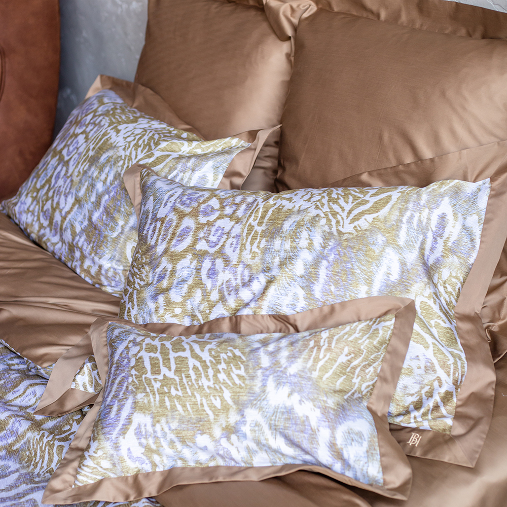 Комплект постельного белья Мозамбик изготовлен из 100% длинноволокнистого хлопка, сатинового переплетения высокой плотности 300ТC. Комплект по тактильным ощущениям мягкий и гладкий, с шелковистым блеском. Натуральные волокна не вызывают раздражения кожи, ткань отлично пропускает воздух и обеспечивает здоровый, крепкий сон. Специальная обработка ткани — мерсеризация сохраняет краски и первоначальный тон комплекта, система антипиллинга предотвращает появление катышков, а предварительная усадка ткани защищает комплект от деформации. Дизайн комплекта Мозамбик создают ткани-компаньоны двух оттенков. Лицевая сторона комплекта выполнена из ткани анималистичного принта. Тыльная сторона комплекта выполнена из ткани великолепного оттенка кофе с молоком. Изысканность комплекту придают декоративные ушки из той же ткани, выполненные в «оксфордском» стиле по периметру наволочек и пододеяльника. Комплект продается в фирменной коробке и может быть преподнесен в качестве подарка.