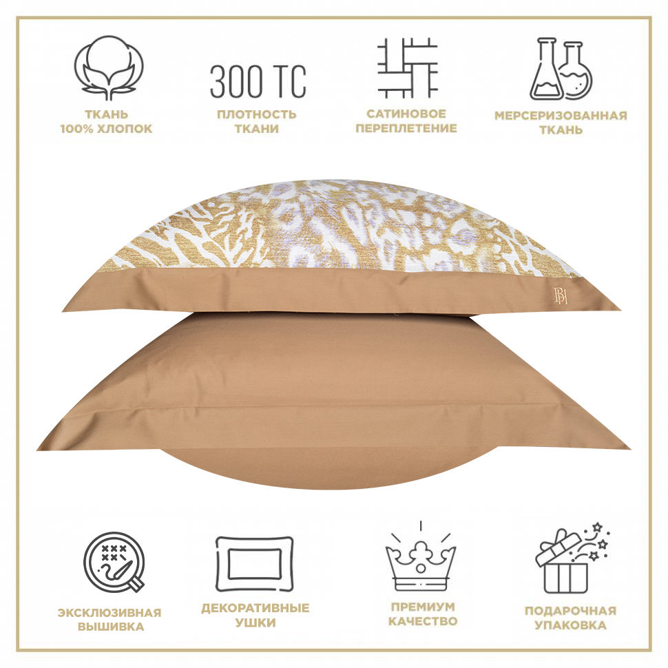 Детали: пододеяльник на молнии, широкий запах на наволочках 20 см, фирменная вышивка «BH» на ушках наволочек и пододеяльников, простыня с дополнительным декоративным притачным бортиком из ткани-компаньона.
