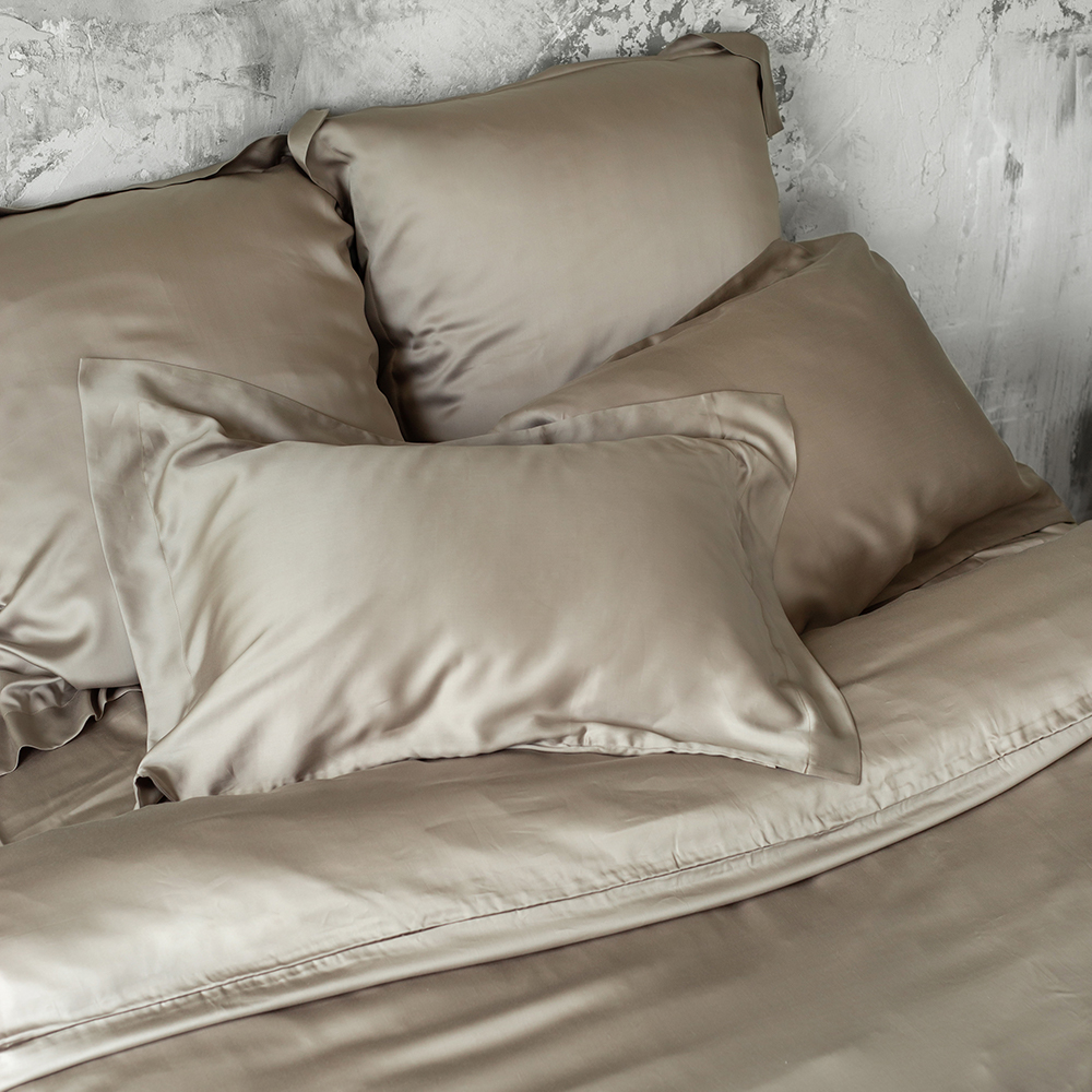 Комплект постельного белья Shiny Truffle изготовлен из 100 % премиального тенселя. Высокая плотность ткани 300TC и натуральный состав подарят легкий и комфортный сон. Постельное белье класса премиум сочетает в себе лучшие свойства шелка и хлопка, обеспечивая вам мягкость, шелковистость и долговечность. Инновационная ткань благодаря воздухопроницаемости и гипоаллергенности, подойдет для самой чувствительной кожи. Особые терморегуляционные свойства тенселя обеспечат прохладу летом, и тепло во время сна зимой.