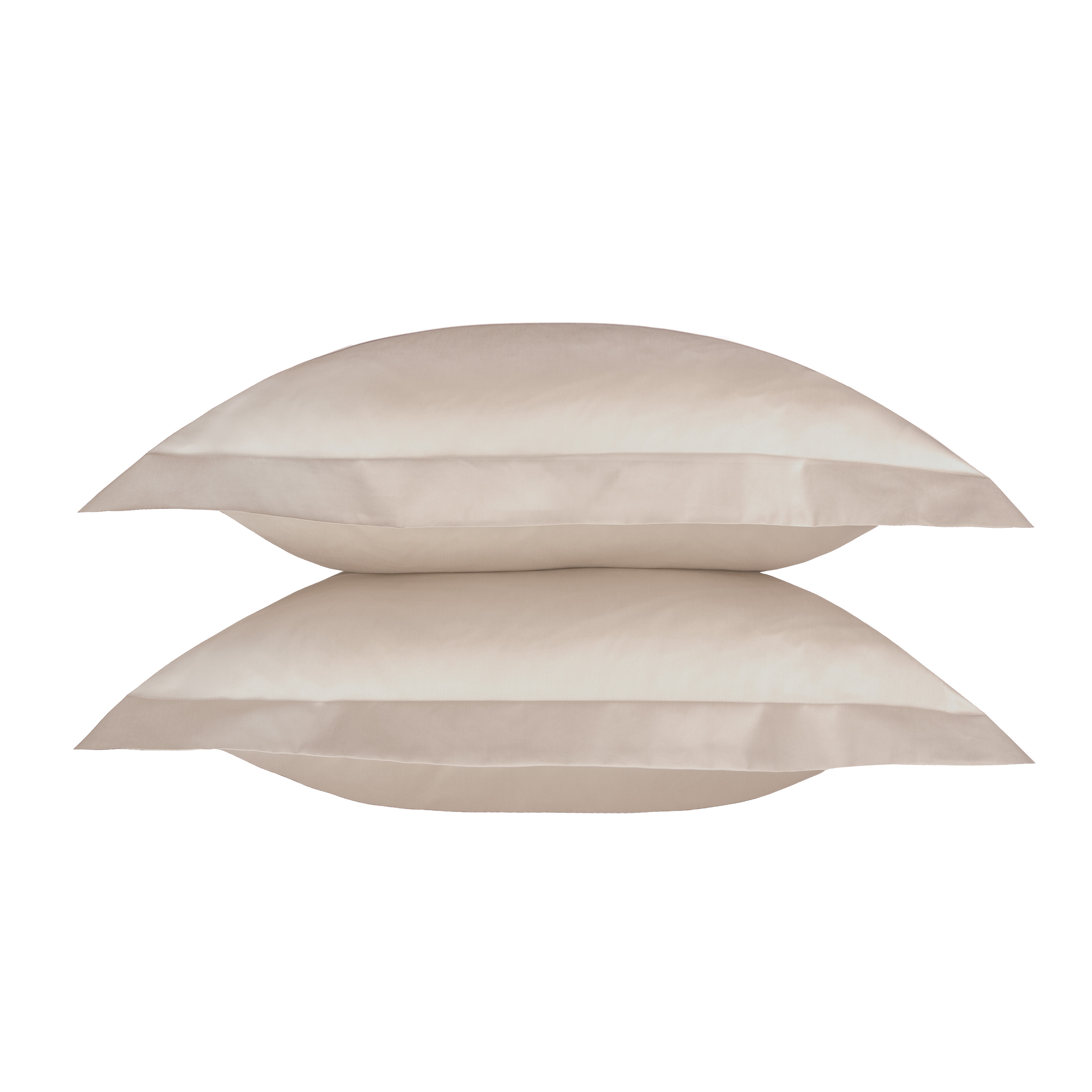 Комплект выполнен в элегантном и лаконичном однотонном бежевом оттенке. Наволочки и пододеяльник оформлены в классическом «оксфордском» стиле с бордюром 5 см по окантовке.
