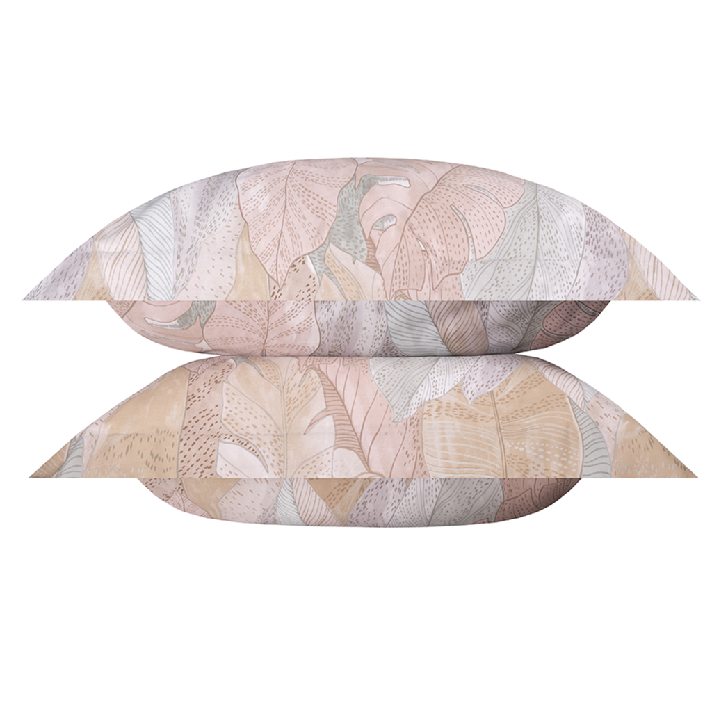 Натуральная ткань отлично пропускает воздух, а необыкновенная мягкость достигается за счет специальной обработки — мерсеризации, после которой они приобретают нежную бархатистую структуру. Наволочки в приятном розовом оттенке украшены крупными листиками, и будут великолепно смотреться в любом интерьере.