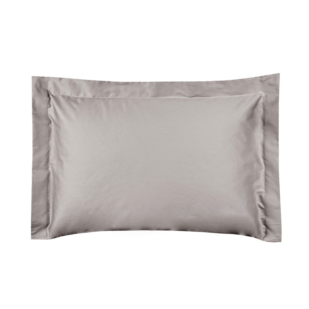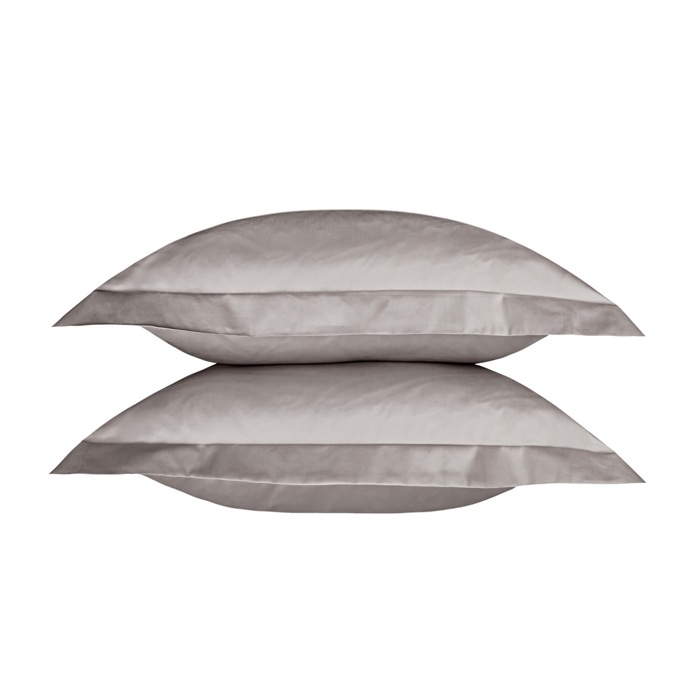 Комплект наволочек Shiny Mist выполнен в элегантном и лаконичном однотонном дизайне серо-бежевого цвета, с широким запахом 20 см. Наволочки оформлены в классическом «оксфордском» стиле с бордюром 5 см по окантовке.