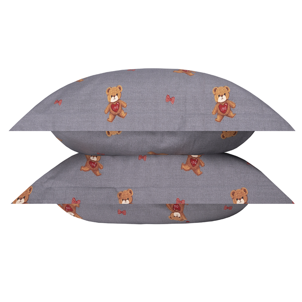 Благодаря натуральным волокнам станет отличным выбором для любителей комфорта: гипоаллергенен, не вызывает раздражений, материал хорошо пропускает воздух и впитывает влагу. Специальная обработка ткани мерсеризация — сохраняет краски и первоначальный тон комплекта. Система антипиллинга предотвращает появление катышков, а предварительная усадка защищает от деформации. Фланель практически не мнётся и прекрасно держит тепло. Наволочки в сером цвете украшены бантиками и милыми мишками. Они будут великолепно смотреться в детской комнате.