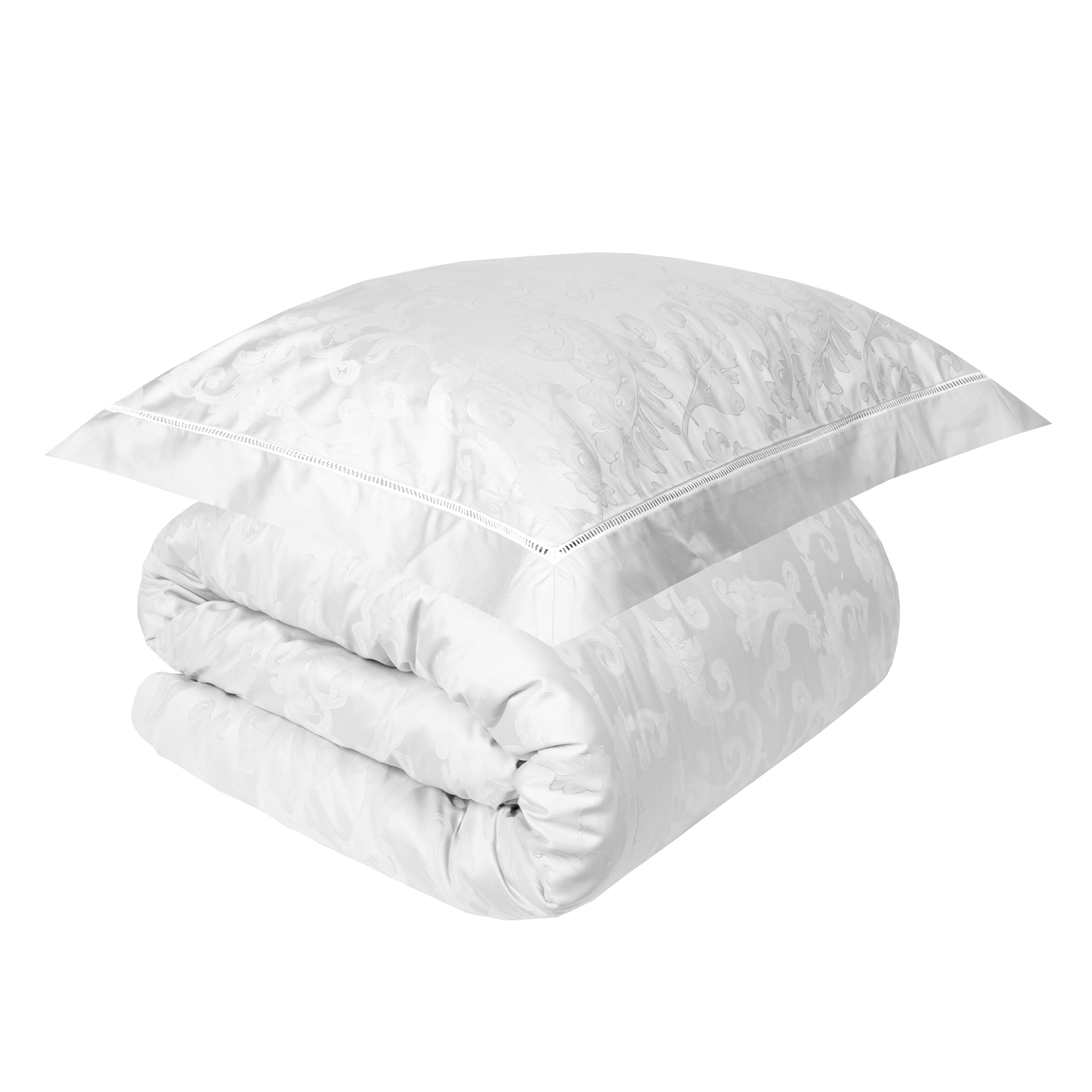 Пододеяльник Амедея изготовлен из 100% жаккарда высочайшей плотности 400 TC. Самая изысканная и нежная ткань жаккард состоит из сложного переплетения, в результате которого получается невероятно плотная, износостойкая, гладкая и красивая ткань с элегантным рельефным орнаментом.