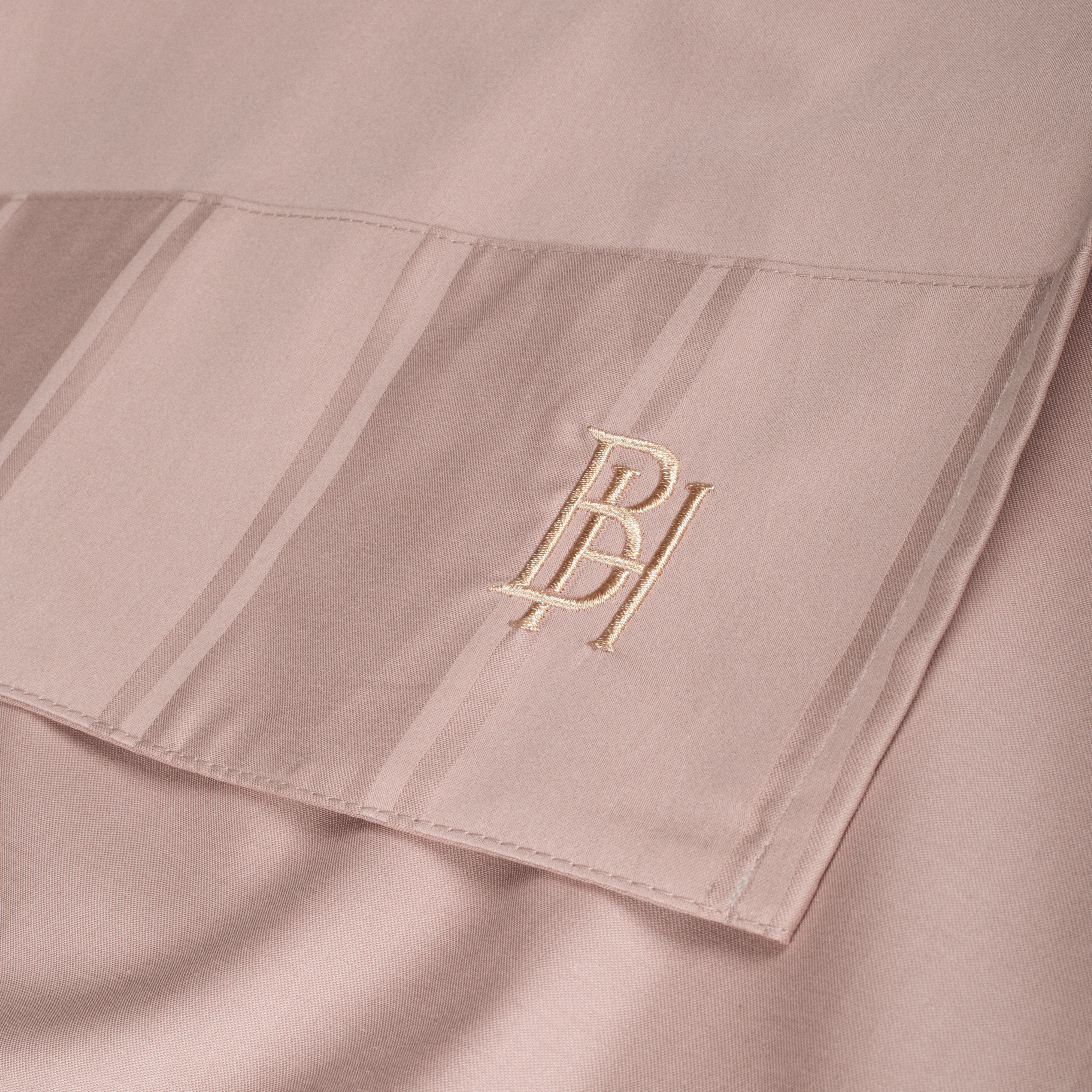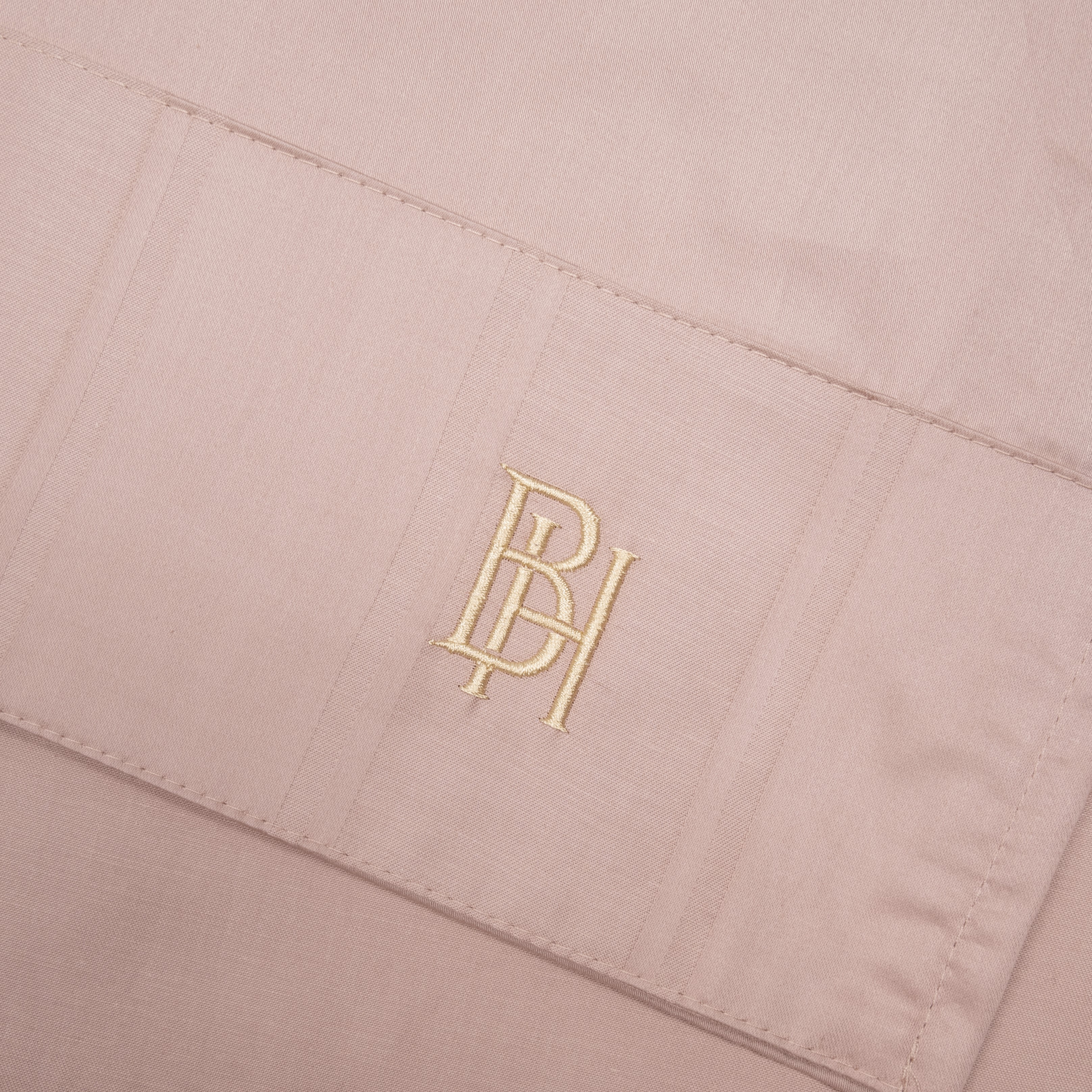 Детали: бордюр из страйп-сатина, вышитая золотая монограмма.