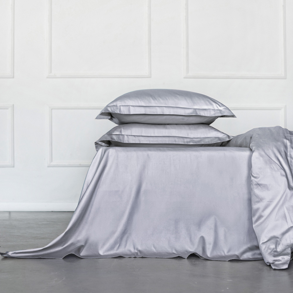 Простыня Shiny Crystal выполнена в элегантном и лаконичном однотонном дизайне нежного серо-голубого цвета в размерах 200х220 см и 250х245 см.