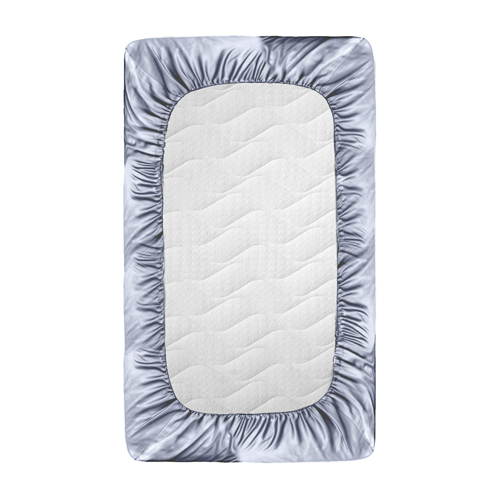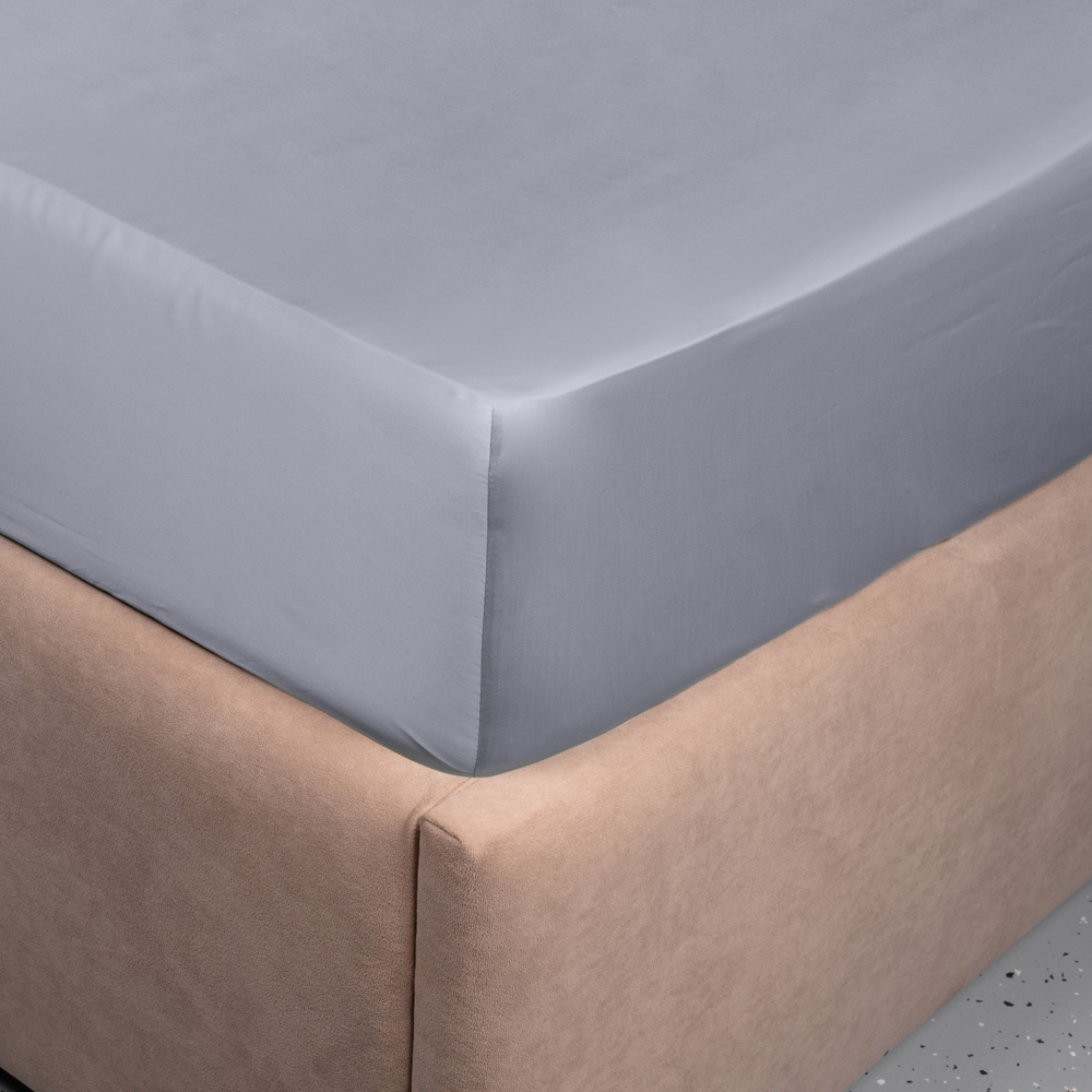 Простыня на резинке Shiny Crystal выполнена в элегантном и лаконичном однотонном дизайне нежного серо-голубого цвета в размерах 160х200х20 см и 180х200х20 см.