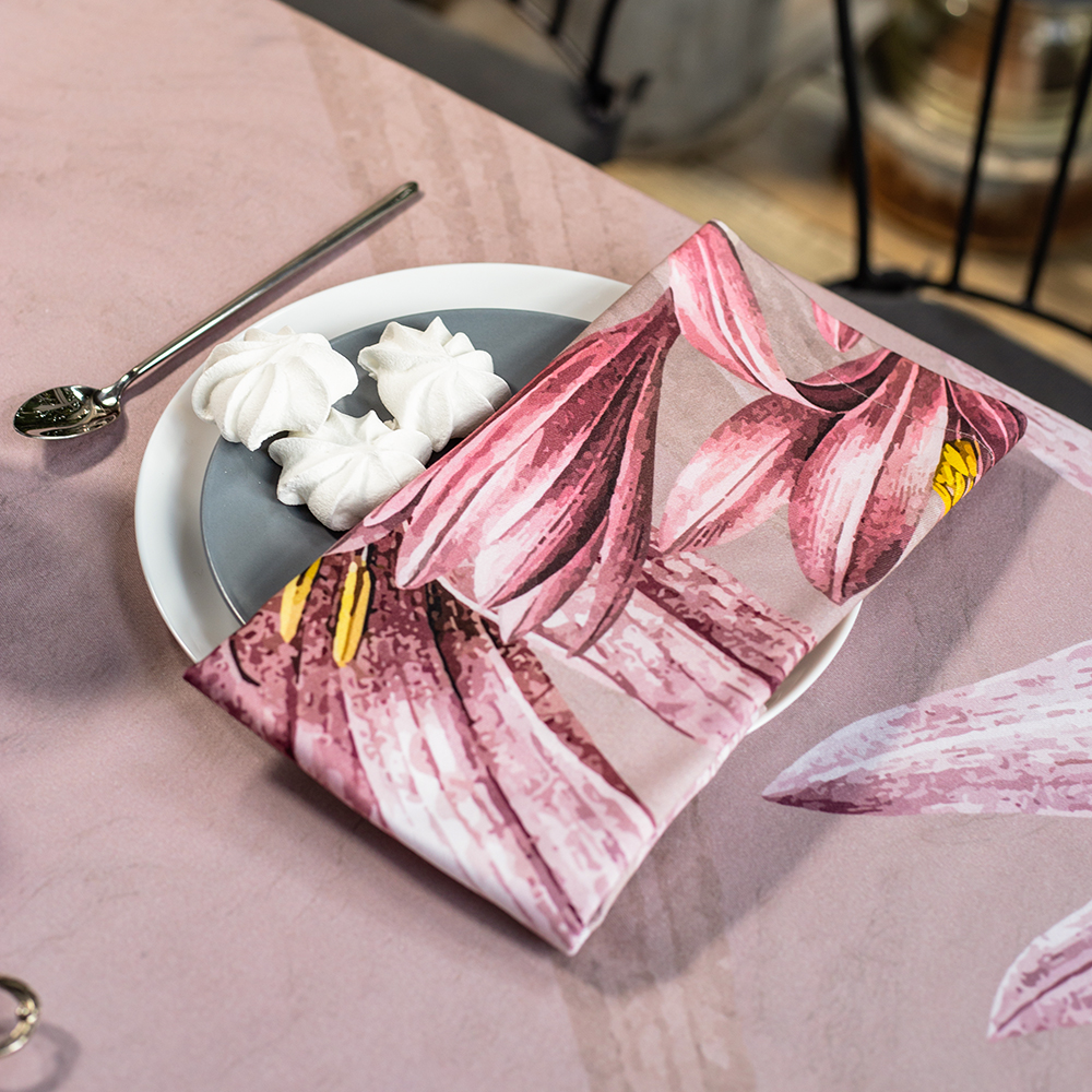 Комплект салфеток столовых "В садах Японии" из 100% хлопка имеет уникальный дизайн, вдохновленный итальянскими и французскими лидерами в области столового текстиля. Яркие и выдержанные рисунки выполнены в живописных стилях и отпечатаны с использованием высококачественной цифровой печати. Ткань не линяет и сохраняет яркость красок даже после стирок.