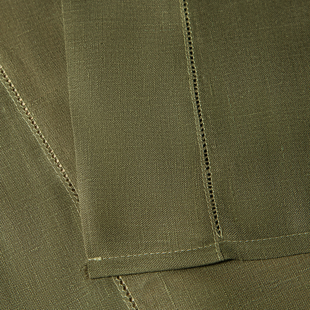 Дорожка столовая lin/cotton Olive Green имеет классическую прямоугольную форму, по бордюру украшена лаконичной мережкой.
