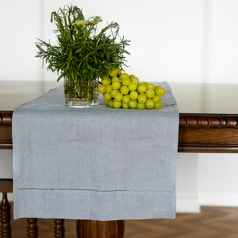 Дорожка столовая lin/cotton Silver имеет классическую прямоугольную форму, по бордюру украшена лаконичной мережкой.
