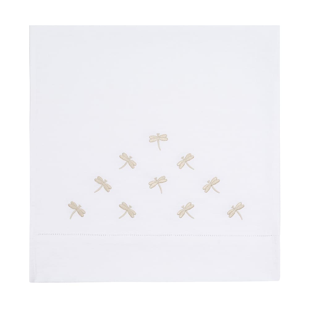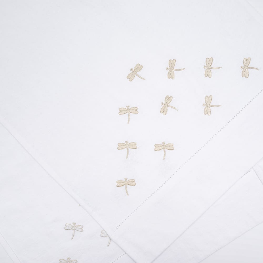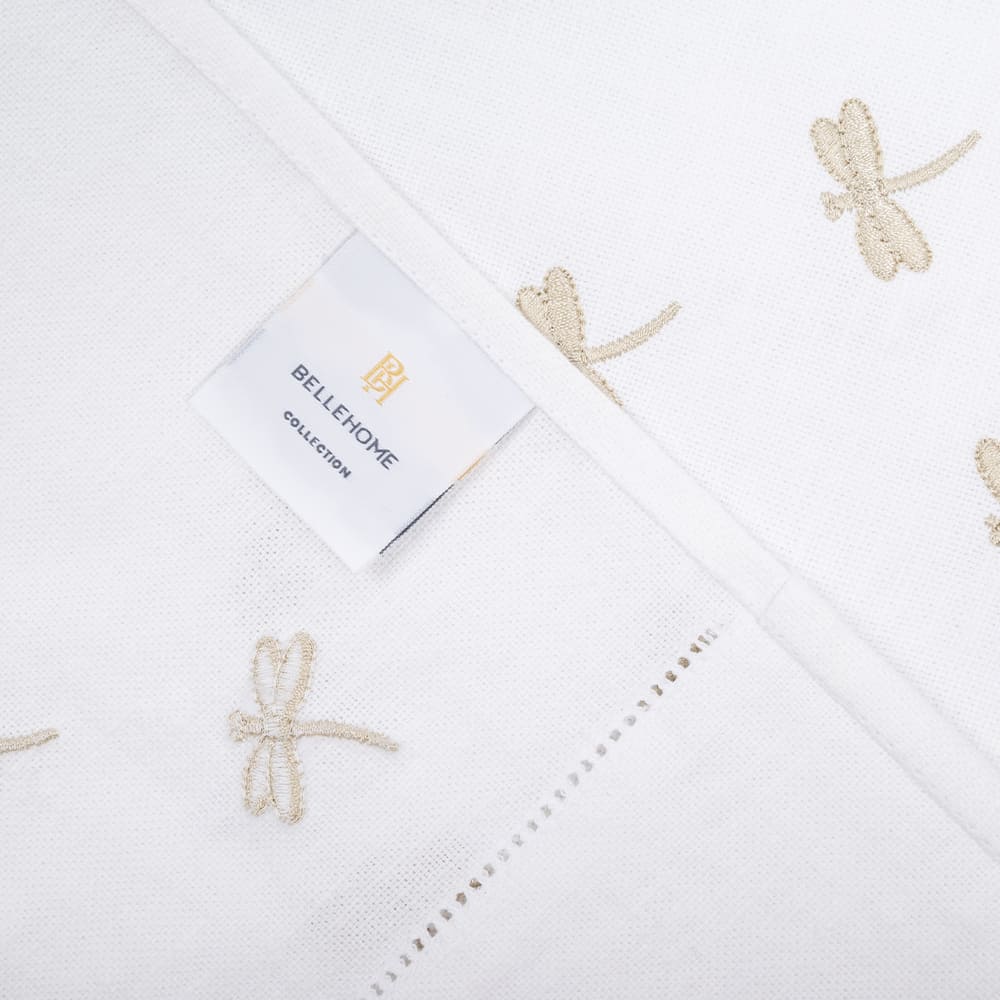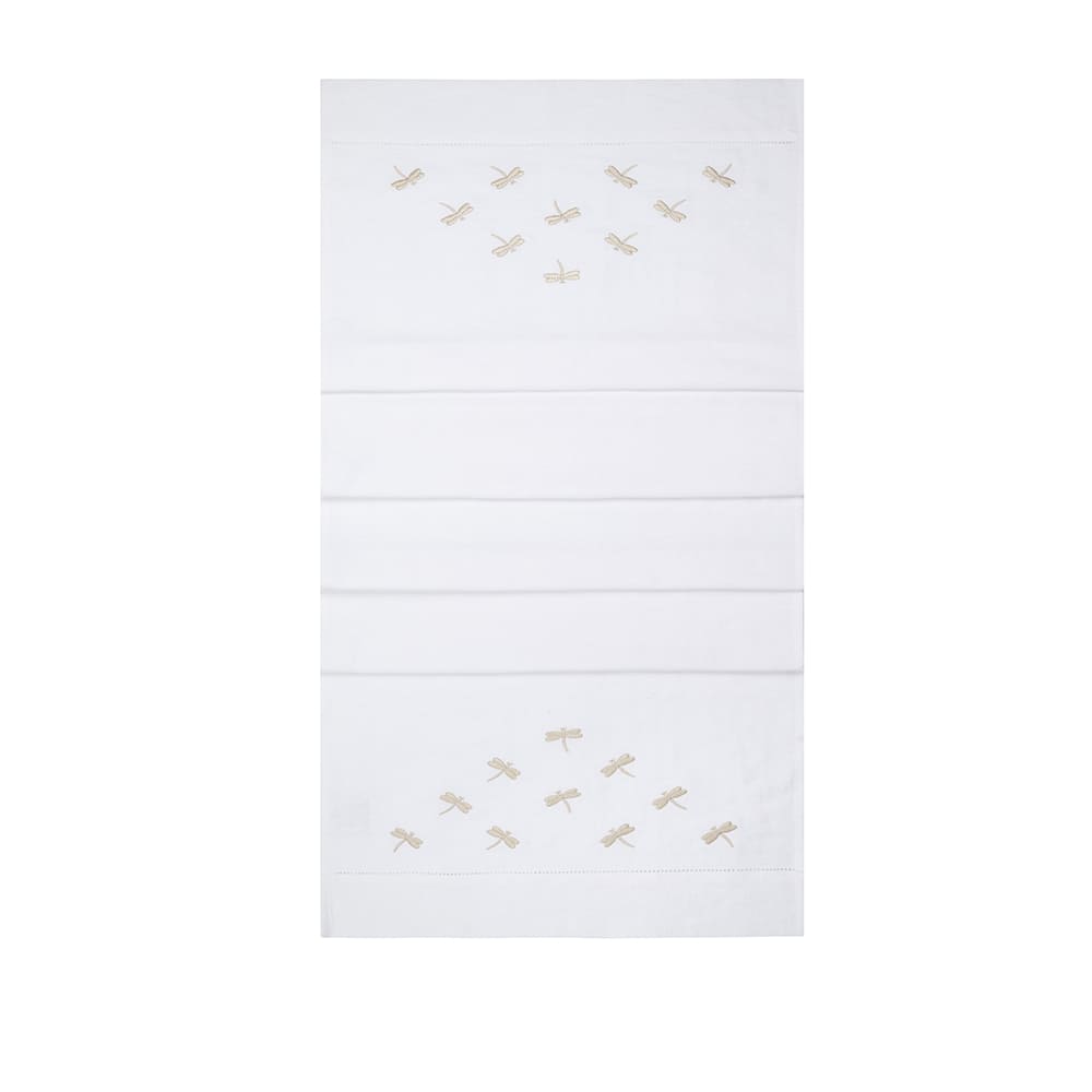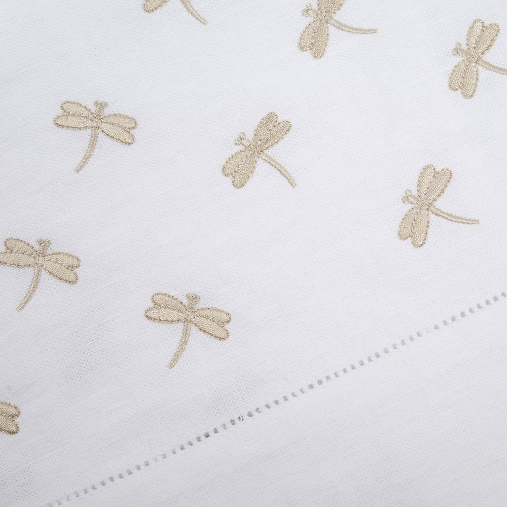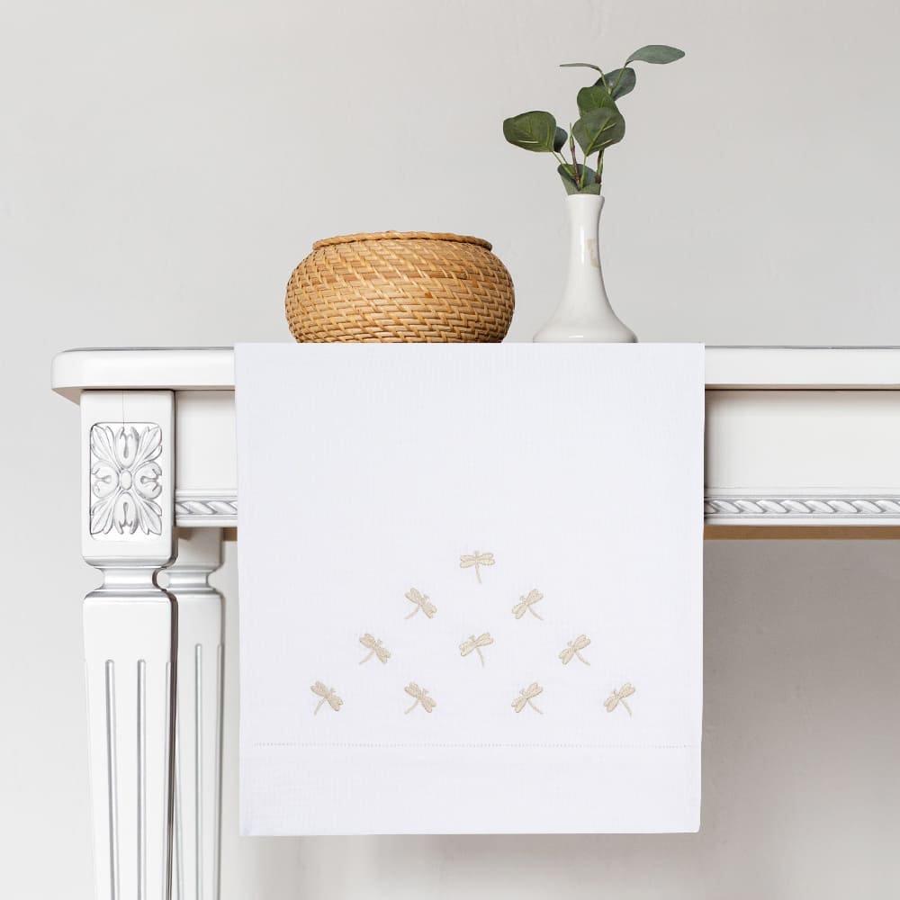 Дорожка столовая из серии Dragonfly, имеет классическую прямоугольную форму, по бордюру украшена лаконичной мережкой, и оригинальной дизайнерской вышивкой в виде стрекоз.