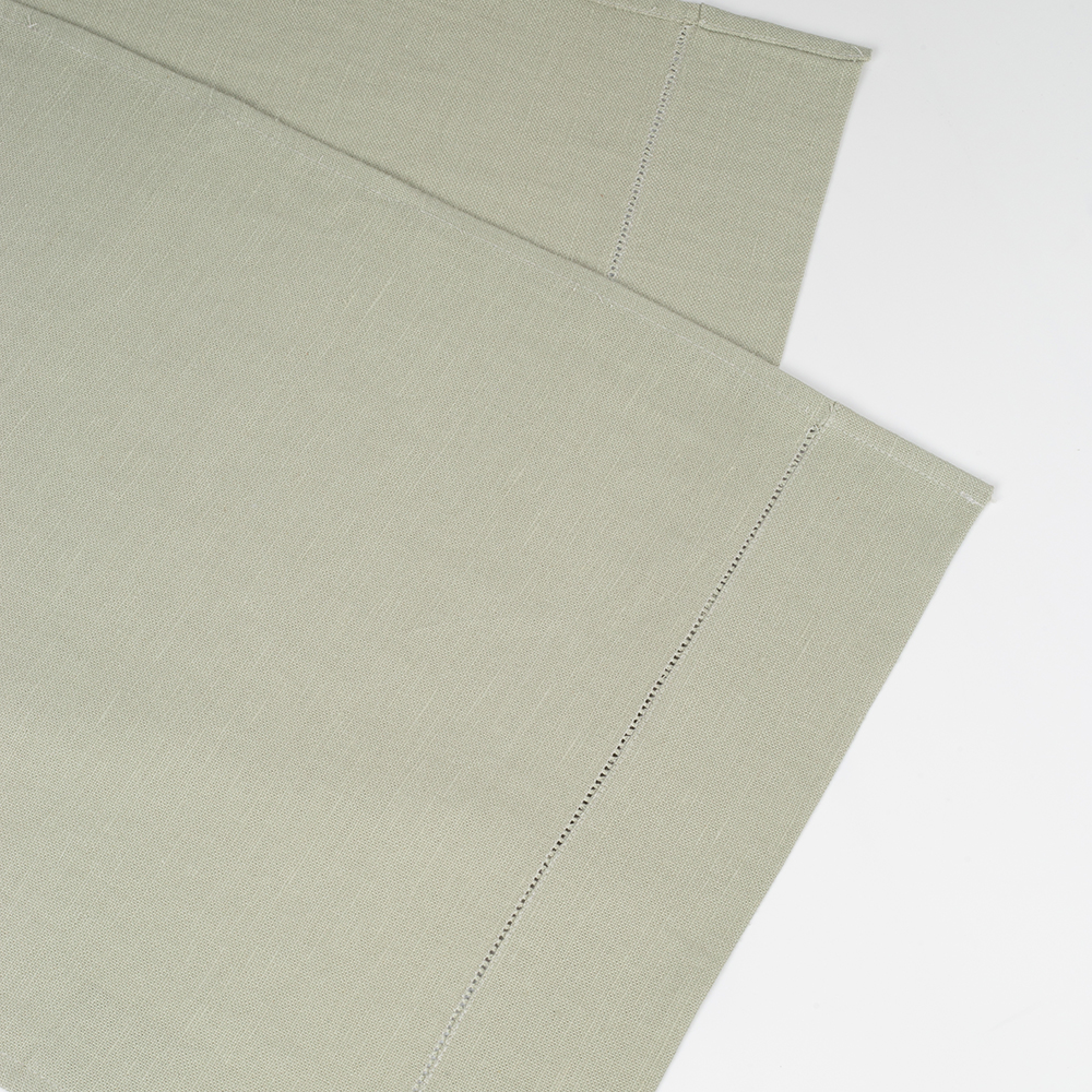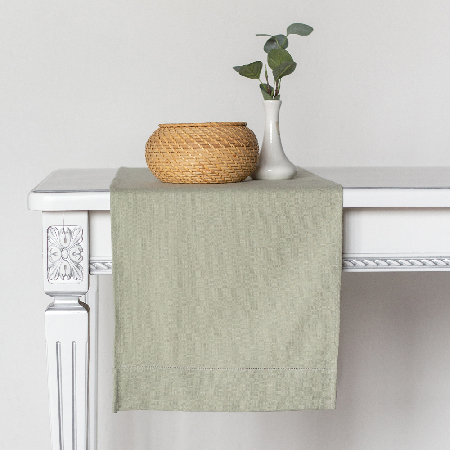 Дорожка столовая lin/cotton Crystal Green имеет классическую прямоугольную форму, по бордюру украшена лаконичной мережкой.