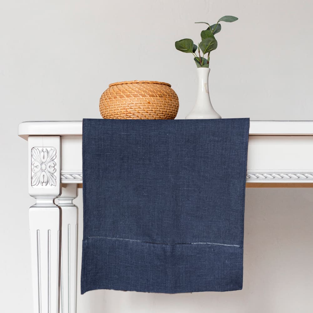 Дорожка столовая lin/cotton Dark Grey, имеет классическую прямоугольную форму, по бордюру украшена лаконичной мережкой.