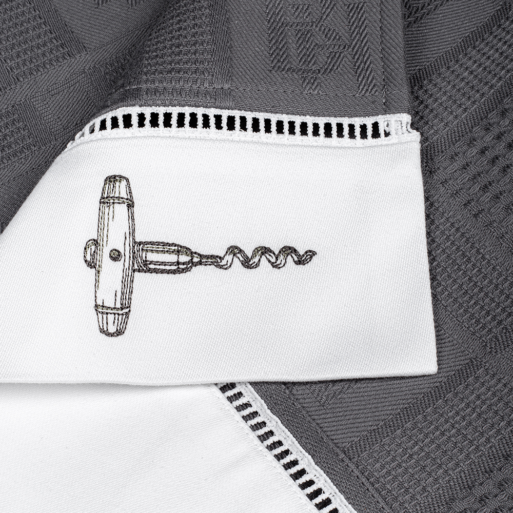 Комплект «Wine opener» выполнен из высококачественного хлопка белого и графитового цвета, по бордюру украшены лаконичной мережкой и хлопковым бортиком с вышивкой в виде ручного и механического штопоров. Вафельные полотенца BELLEHOME — это практичность, комфорт и уют!