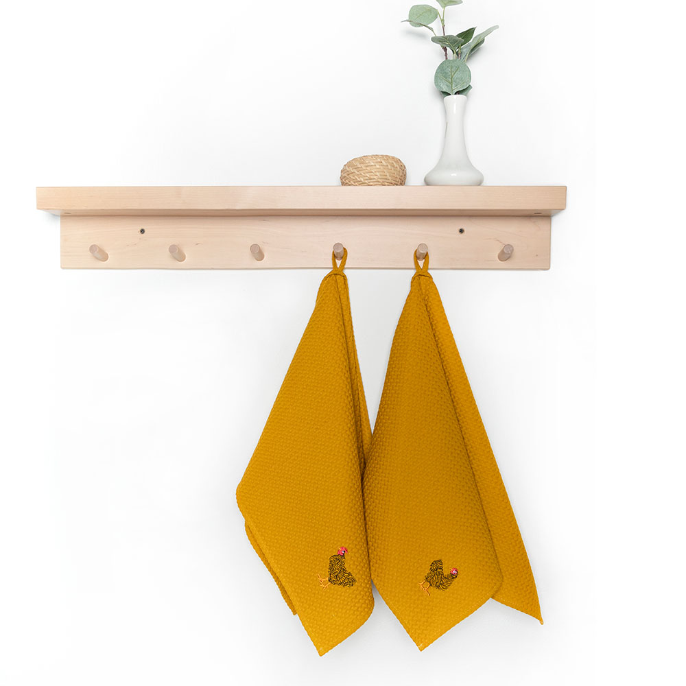 Набор кухонных полотенец имеет классическую прямоугольную форму и украшен вышивкой с домашними курочками. Полотенца от BELLEHOME станут неотъемлемым элементом декора и превратят процесс сервировки стола в прекрасную традицию, наполнять пространство красотой и гармонией. Для удобства использования к изделиям пришиты петельки для удобного размещения на крючке. Регулярный уход допускает стирку при температуре не выше 30С, не используйте отбеливатель, гладить при температуре не более 150С.
