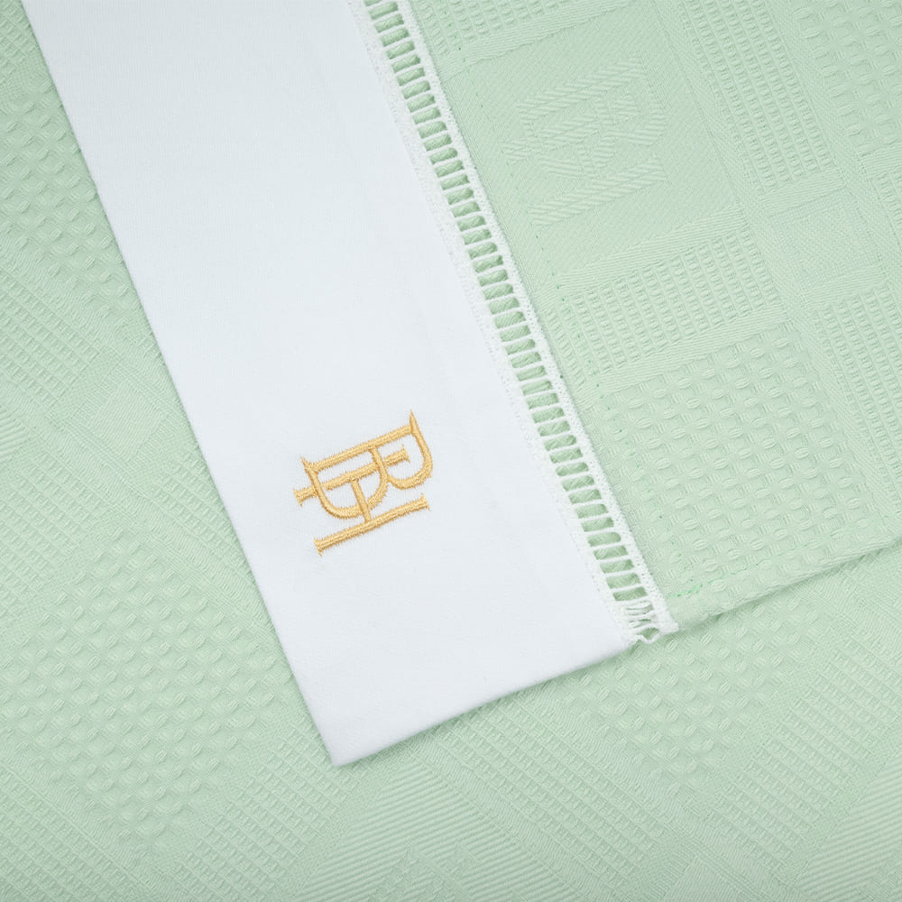 Полотенца выполнены из высококачественного хлопка, по бордюру украшены лаконичной мережкой и хлопковым бортиком с фирменной вышивкой «BH». Вафельные полотенца BELLEHOME — это практичность, комфорт и уют!