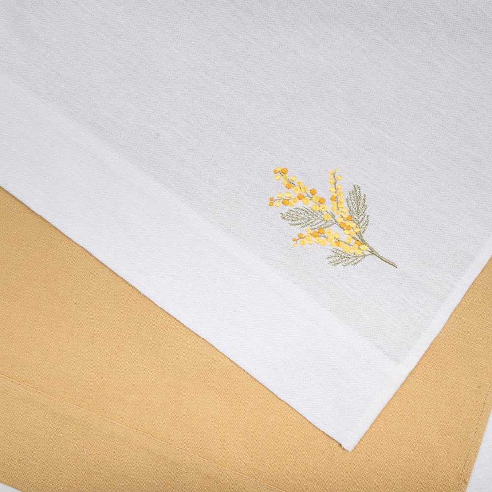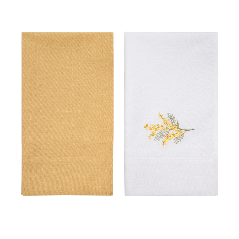 Комплект полотенец столовых Mimosa — красивый и практичный элемент кухонного текстиля. Натуральная текстура переплетения нитей с эффектом естественной мятости полотна станет практичным дополнением для вашей кухни. Ткань из органического льна с добавлением хлопка высшего сорта прошла специальную обработку, после которой стала мягкой и приятной на ощупь.